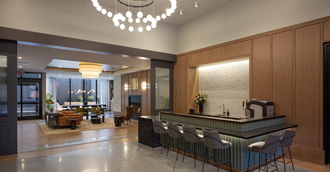 Tapestry station is a five-story, mixed-used multifamily residential building situated at the former location of Vogue Fabrics, that was there for over 60 years. This new development features 27 distinctive floor plans comprised of Studio, 1 Bedroom, and 2 Bedroom units, along with ground-floor commercial space. Some of the community amenities featured are an expansive rooftop deck, fitness center, coworking space, and heated parking.