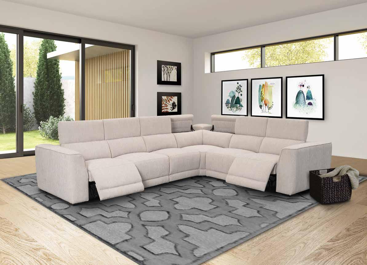 Cozy yet stylish, the Spencer sectional creates a welcoming space for rest and relaxation. Whether you’re watching a favorite movie or hosting game night with friends, this six-piece sectional offers plush comfort. Upholstered in an on-trend fabric, it features power footrest and headrest functionality and is ready for a FreeMotion cordless battery. MSPE-PACKA(H)-TGR