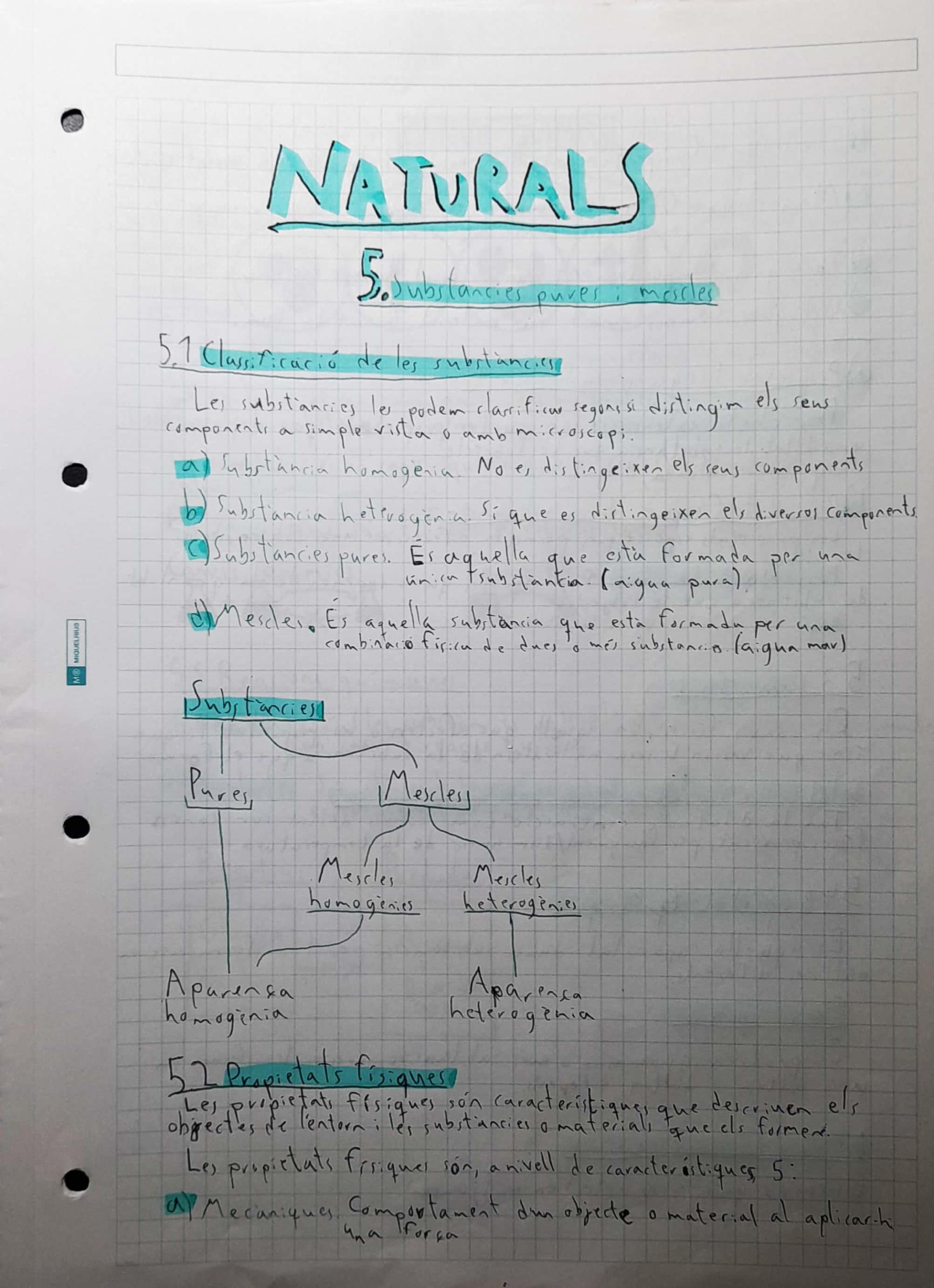 Dossier naturals 5: substancies pures i mescles