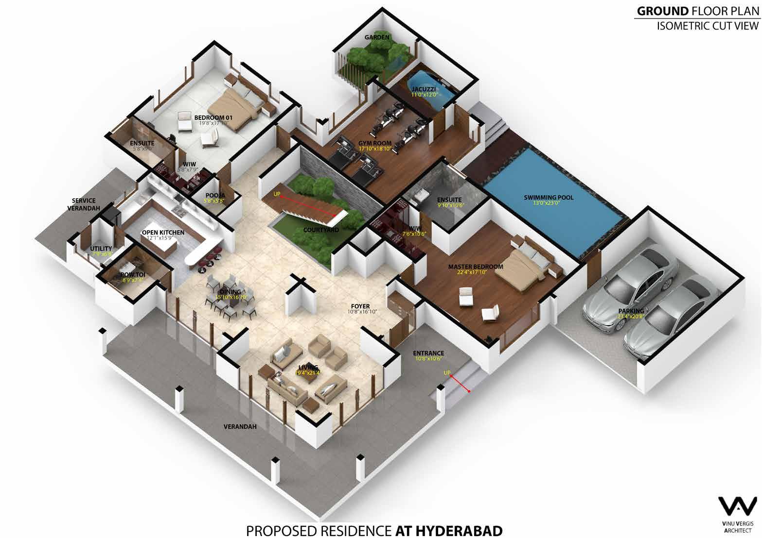 The entrance leads to a podium with stage where all the programs happen and all the balcony views are concentrated on the ground. The large sized windows gives immense amount light and ventilation.