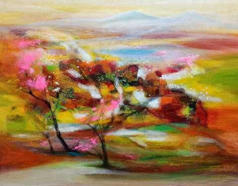 【後現代的詩意與夢幻】呂月華油畫個展是一場心靈景觀的旅程 每一幅畫都是一首無聲的詩 一場不肯醒來的夢 趕緊搭上這班一 去不復返的列車 通往奇幻的旅程吧