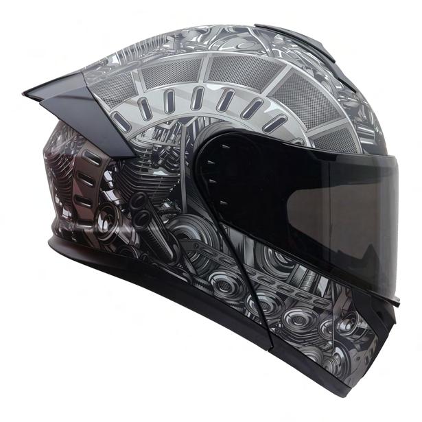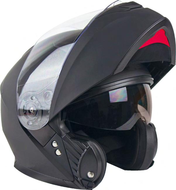 La parte frontal de este se puede levantar mediante un sistema manual abatible. Éstos cascos se adaptan a cualquier situación de conducción, siendo el preferido en viajes largos ya que no es necesario quitarlo para comer o beber algo rápidamente.