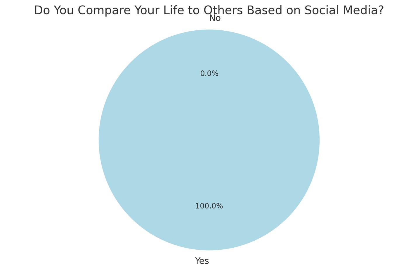 This chart represents the percentages of people who responded to the question of whether they compare their lives to others based on social media All participants indicated that they do compare their lives, highlighting the widespread impact of social media on self-perception and comparison