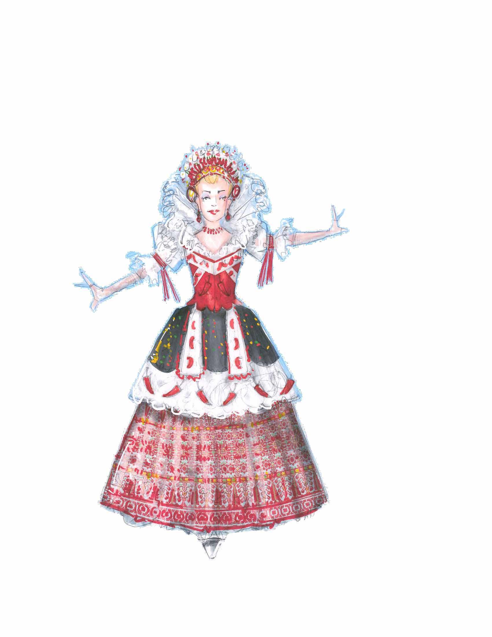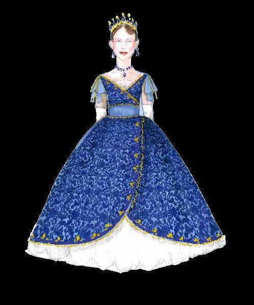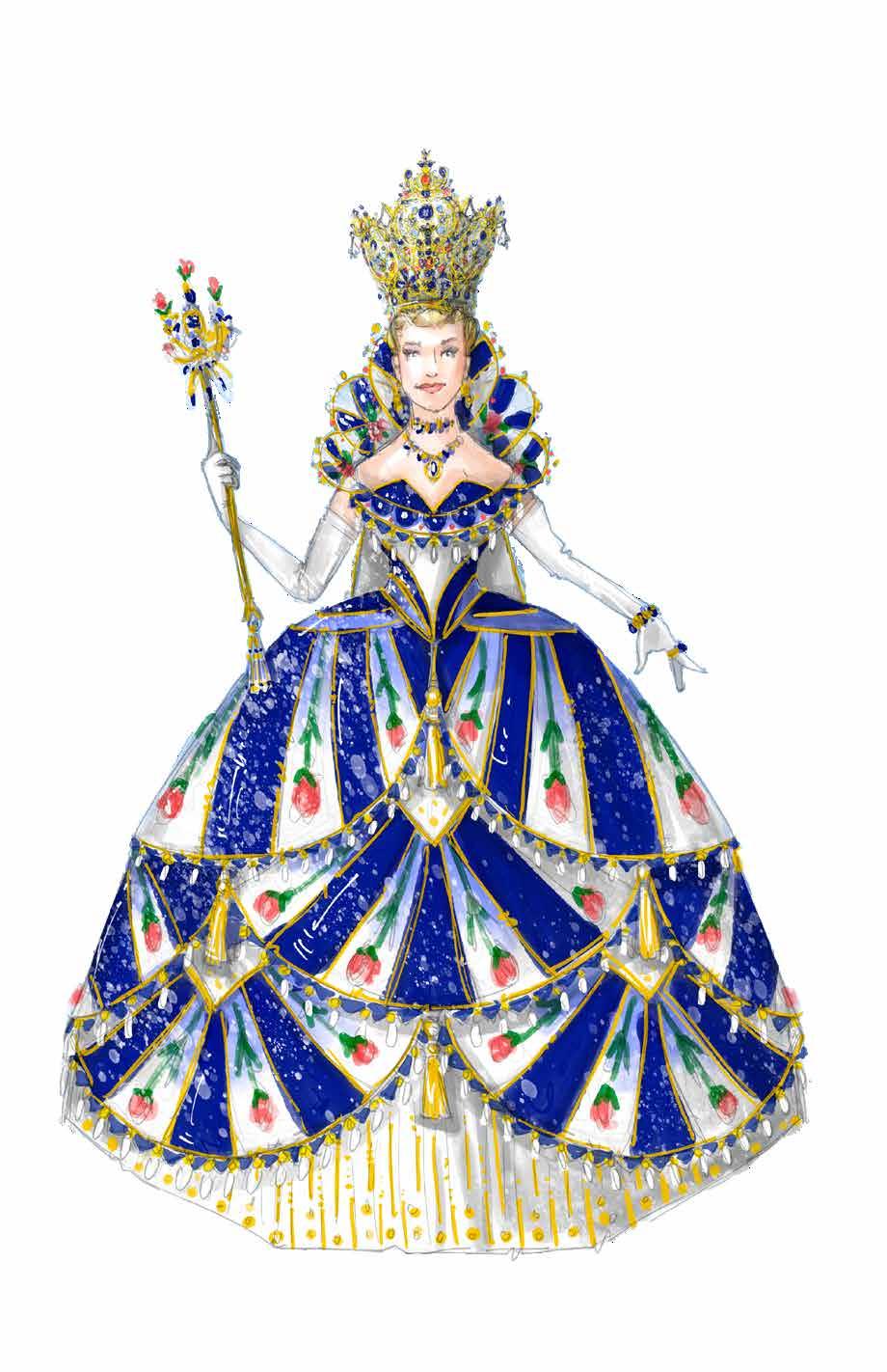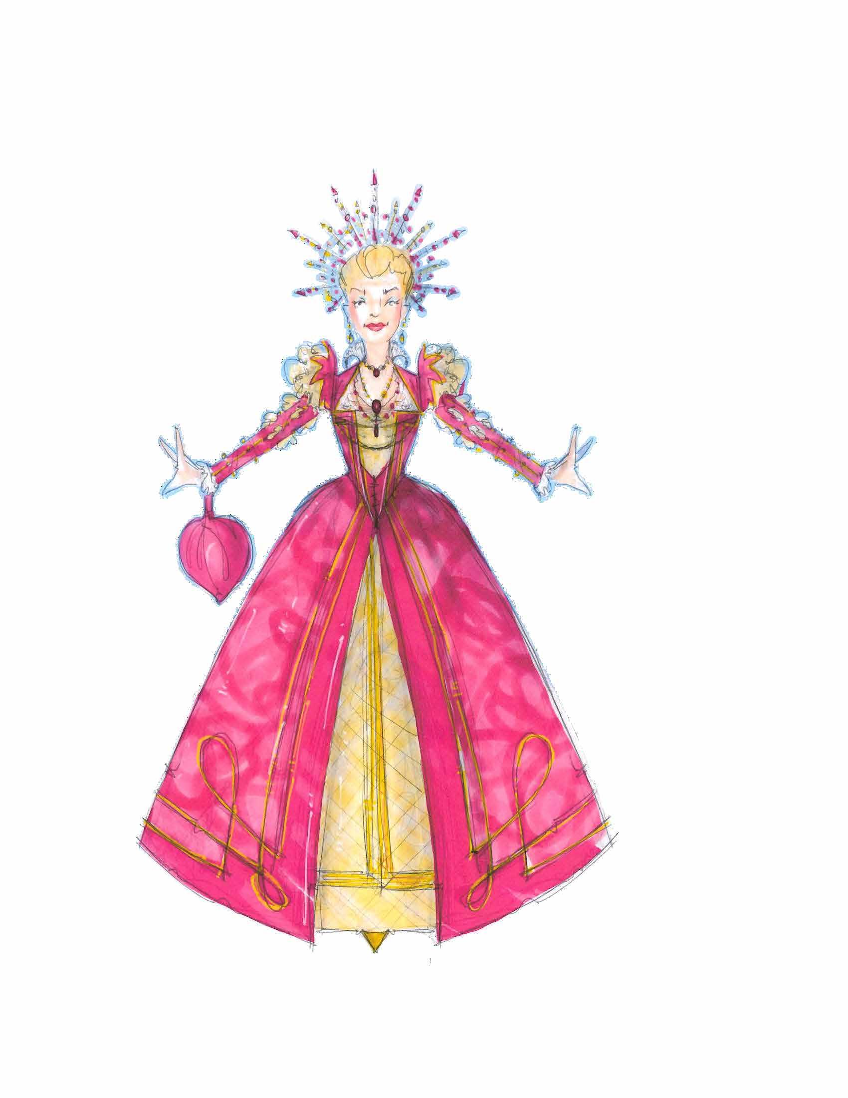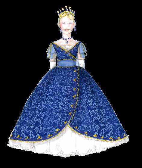 The elaborate costumes for the court, including the queen, princess, ladies-in-waiting and duchesses, were inspired by the