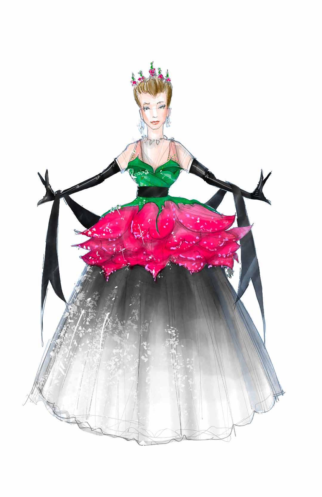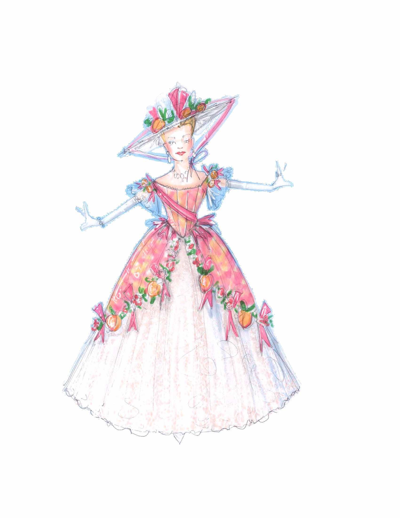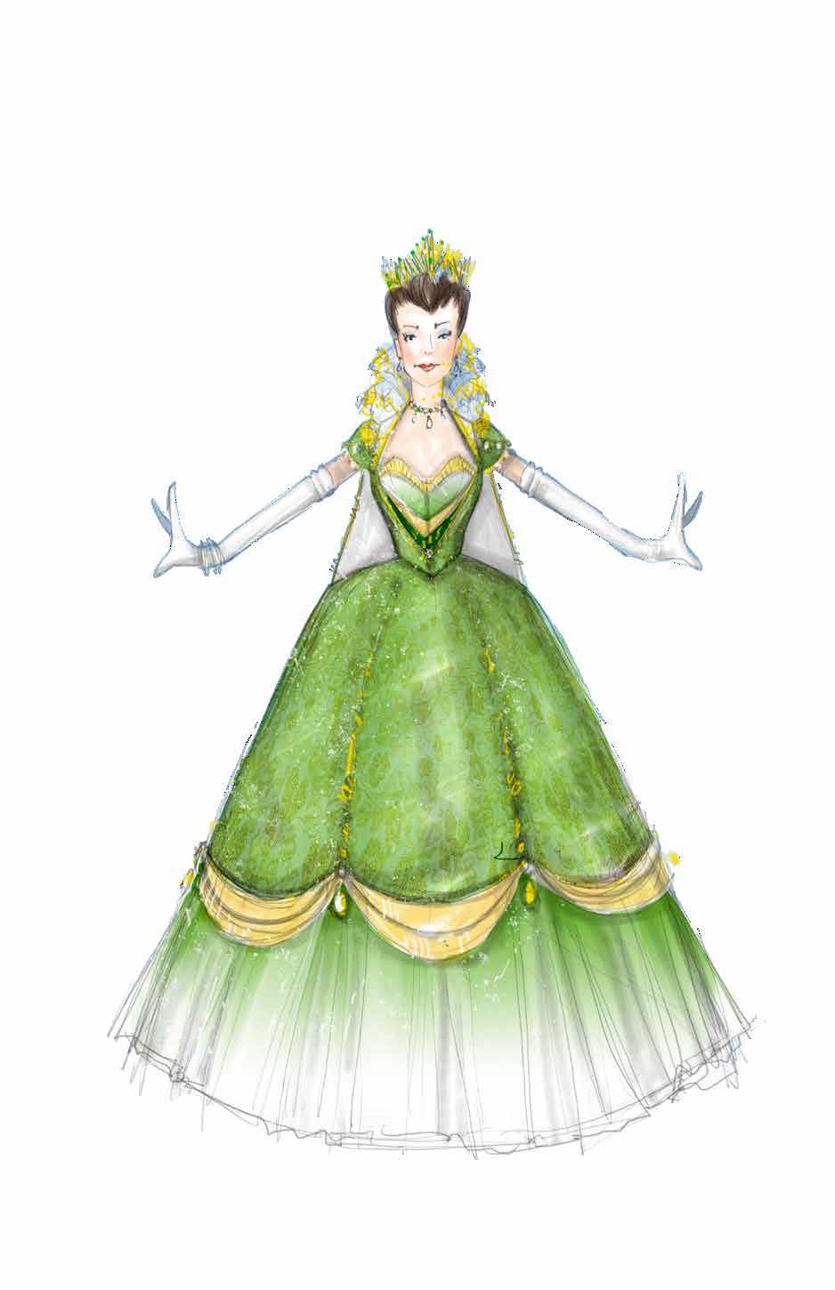 The elaborate costumes for the court, including the queen, princess, ladies-in-waiting and duchesses, were inspired by the