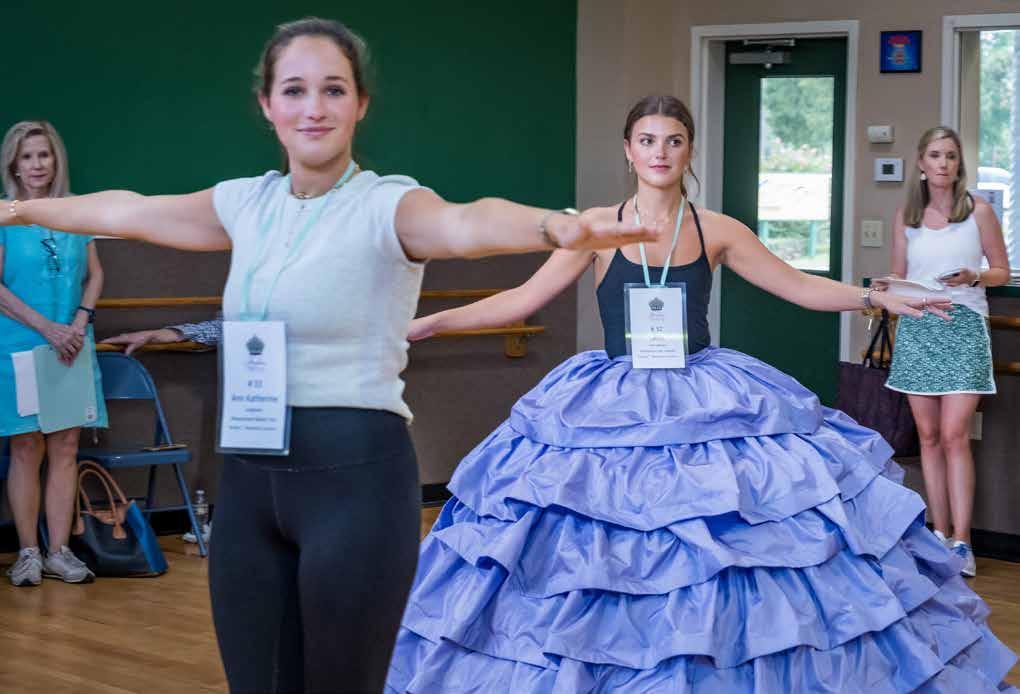 ANN KATHERINE VIRGINIA JACKSON, Duchess of Longview, left, and Charlotte Claire Lydick, Duchess of Fort Worth, practice their moves in July during a summer rehearsal.
