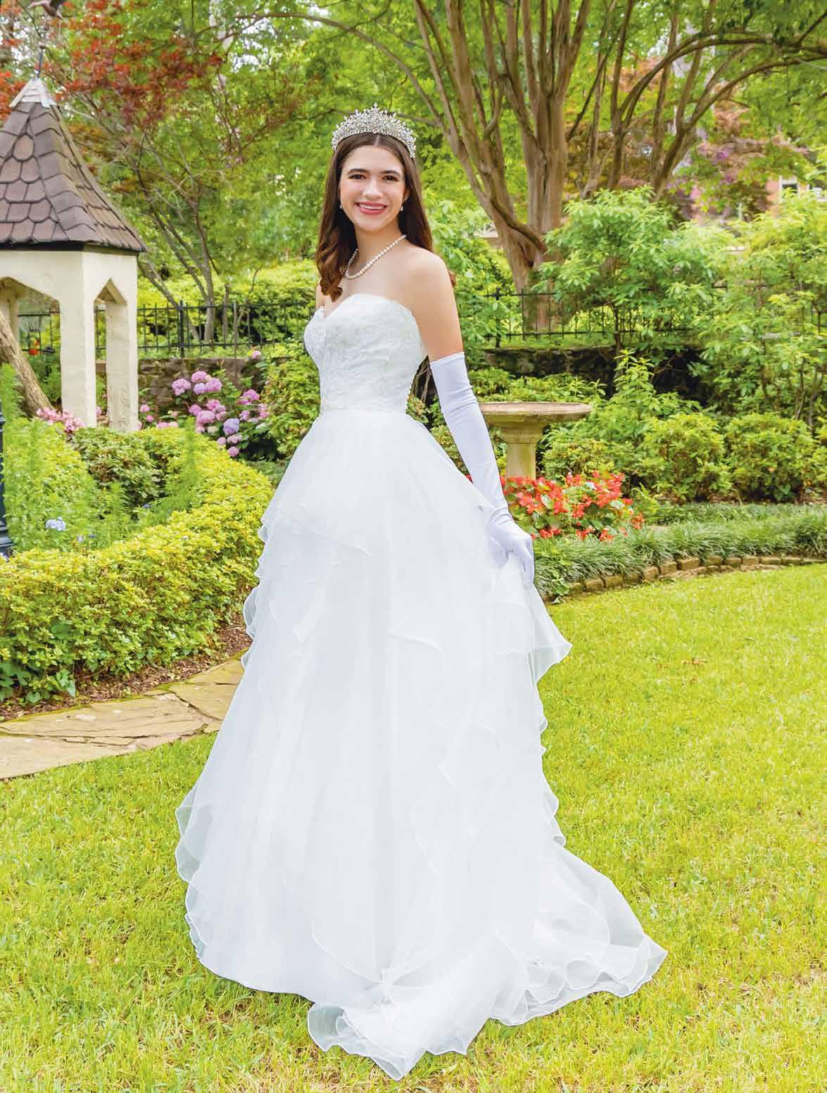 As a creative person with an eye for design, Faulconer has enjoyed the opportunity to help design her Texas Rose Festival dress. Designed by Jacob A. Climer, Faulconer received his initial design then personalized it to reflect her own style.