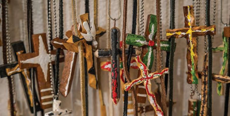 limb and has one that he’s kept for himself. The rest, like most of the crosses he’s made over his lifetime, he gave away. Over 200 adorn the walls of the First United Methodist Church in Henderson, where he moved in 2019 after the death of his second wife, Paula, to be closer to his eldest daughter, Loretta. Some of his crosses have gone all over the world, including countries like Mexico, Uganda and as far as Russia. Many have been gifted to people along with a small piece of paper explaining the cross’ design with Meissner’s contact information.