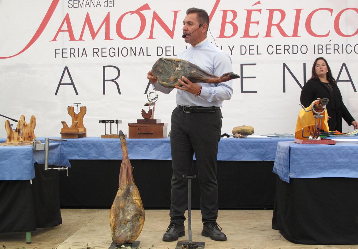 La clase magistral está pensa da para todo tipo de público, “por que no solo hablamos del corte del jamón, si no de todas las he rramientas que lo acompañan, la charla es sobre el ritual del cor te, de cómo ha evolucionado, de cómo se empezó, cómo se cor ta ahora... Hablamos también de la forma de conservarlo, envasar lo, cómo las tablas o soportes han cambiado... Es decir, que va dirigi da a todo el mundo, no es específi ca para profesionales, es por puro enriquecimiento personal” mati za Miguel Prieto. “Quienes asistan aprenderán aspectos tan prácti cos como qué hacer con el jamón una vez empezado o qué cuchillos es mejor usar”. m