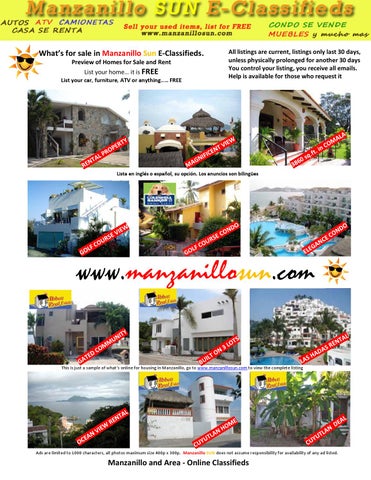 What’s for sale in Manzanillo Sun E-Classifieds. Preview of Homes for Sale and Rent List your home… it is FREE List your car, furniture, ATV or anything….. FREE