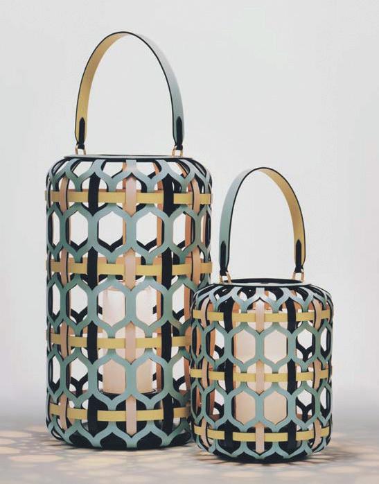 Let Louis Vuitton luminate your summer courtesy of their latest Objets Nomades collection: chic lanterns done the high-fashion way. Designed by Italian-based design duo Giorgia Zanellato and Daniele Bortotto, the lanterns were inspired by long summer nights spent dancing under garland lights. Each one features a delicate interwoven leather honeycomb pattern and blown glass light dome that diffuses the geometric yet poetic pattern inspired by beehives; rechargeable LED light and efrosted glass bulb create a warm, romantic touch when lit. Designed to be used both inside and outside, the lanterns were crafted to mimic a handbag with a carrying strap and three brass “feet.” Available in green and red and in two different sizes, the Vuitton lanterns are the ultimate in home décor. – CHANNING HARGROVE
