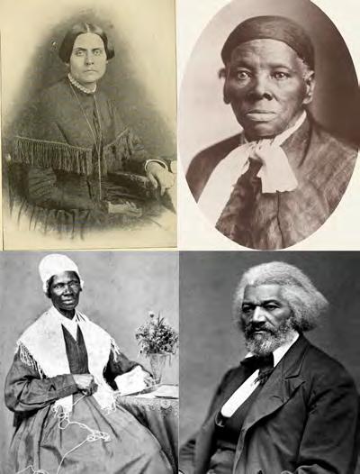 Clockwise from top left: Susan B. Anthony, Harriet Tubman, Frederick Douglass, Sojourner Truth
