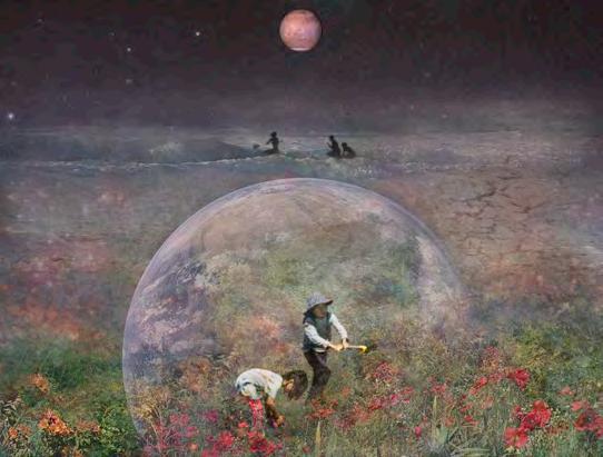 Similarly, artworks that inherently demonstrated the power to elicit a palpable immediacy for political reflection, or that sparked empowered inspiration, or compelled a deeper societal analysis— works that ultimately invoked the furthering of feminist fomentation— were fundamental forces guiding my selections for this exhibit. The artworks showcased become vehicles through which we can visually alchemize a viable, progressively-renewed, ecoegalitarian-driven, and socially sustainable future.