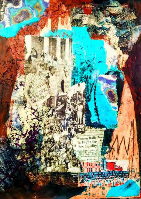 The jurors of ACCESS: An Ordinary Notion are delighted to present Pamela Pitt with “The Alice Paul Honor” for her mixed media series titled Putting Women in the Constitution. Pam’s professional background has profoundly enriched her art activism. While in law school, she started the Women Law Students group with a friend and put on a debate for the ERA. As she was completing her studies, the National Women’s Political Caucus had its first ever national convention in Houston where she lived. Energized by this, she became seriously involved with the Harris County Women’s Political Caucus. She also became one of the representatives to the Texas Women’s Political Caucus in Austin. The rest, as one might say, is history! This dynamic body of work about the Equal Rights Amendment and its author, Alice Paul, embodies ACCESS: An Ordinary Notion’s spirit.