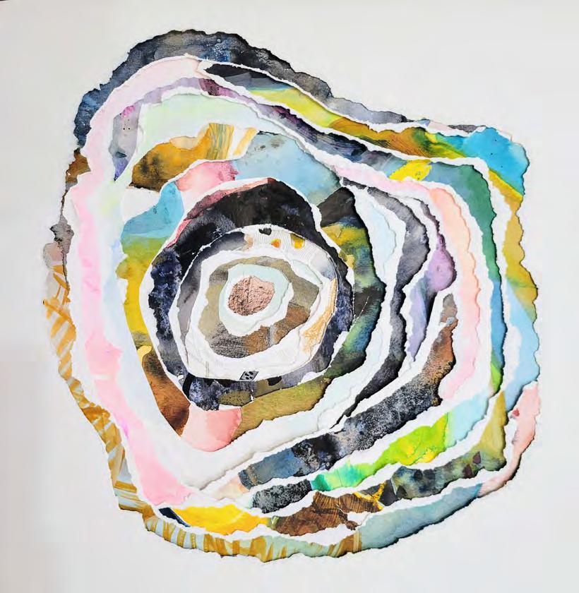 Influenced by landscape, both literal and cultural, Meghan Lewis MacLeod Ph.D., a queer, mixed media, abstract painter, delves deeply into transpersonal terrains wherein unseen inspirations take shape. Her interest in ecofeminist iconography led to studies in art and psychology at the University of Michigan. After completing her doctorate at the Institute of Transpersonal Psychology in perinatal mental health and creative expression, Meghan became the founding Director of the LGBTQ Perinatal Wellness Center. Since resuming painting full-time, she has become an award-winning, published, collected, and commissioned artist showing throughout the Bay Area and beyond. Additionally, Meghan maintains an arts-based counseling and consultation practice and leads the National Women’s Caucus for Art LGBTQ+ member pod.