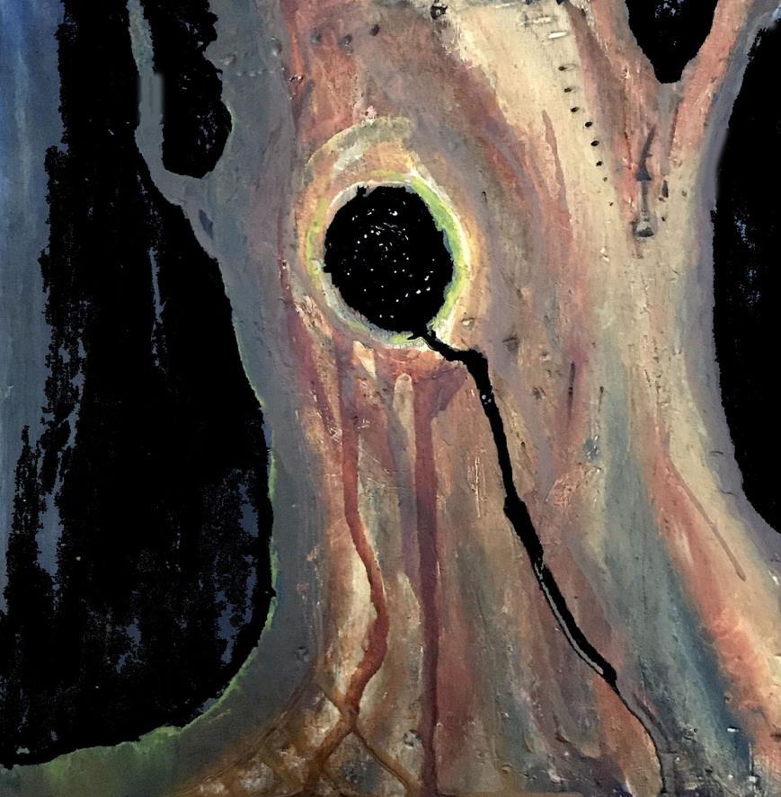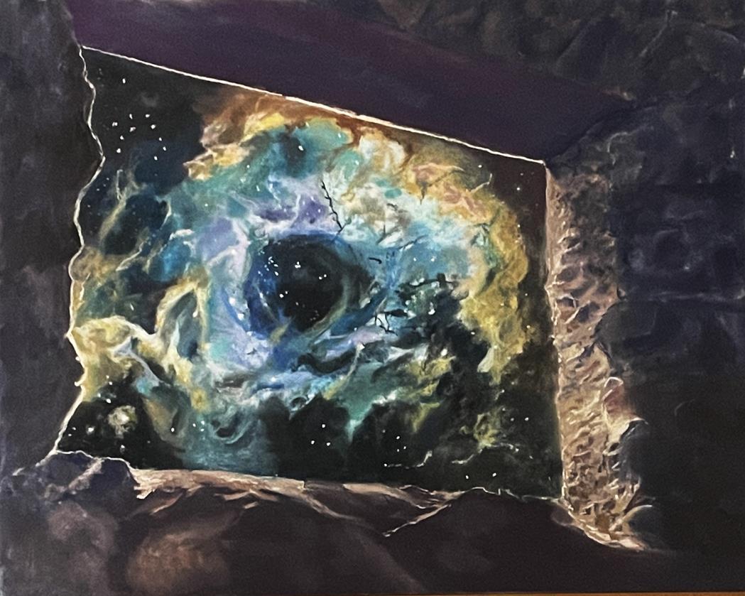 Caves, mountains, waterfalls, and ancient forests are believed to have a strong connection to the spiritual realm due to their unique energy and history. A Crack in Everything by Marie Cameron has captured the sublime moment, a moment of receiving grace. Marie says, “A cave is a great metaphor for a dark secret place that is cold and treacherous. It can be a hiding place but one potentially filled with unknown, unseen dangers. The mouth of a cave is truly a threshold into the world of light and possibility, calling the cave dweller forth to partake in the beauty and magic of the world beyond.” Kayla Kirsch points out, “Portals are entry points to and from other worlds. My artwork strives to illuminate portals in the body and the natural world. While some portals are downright scary, I