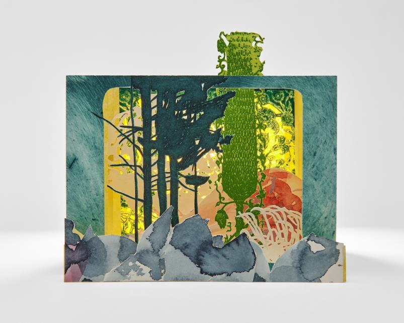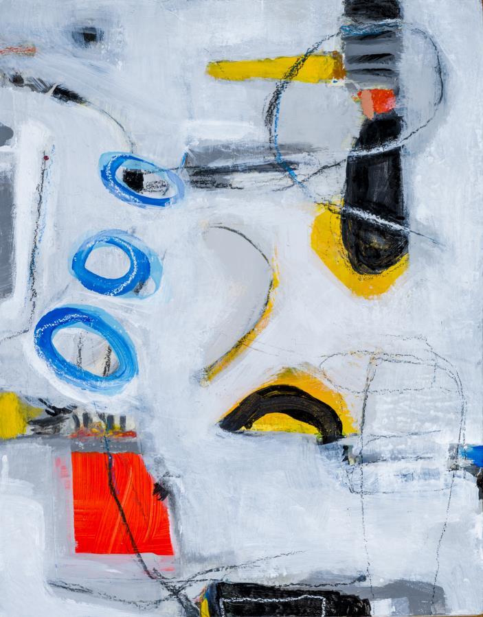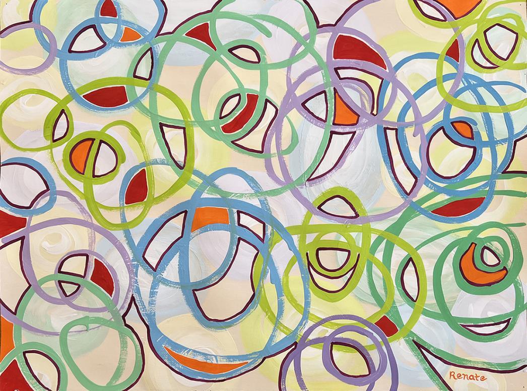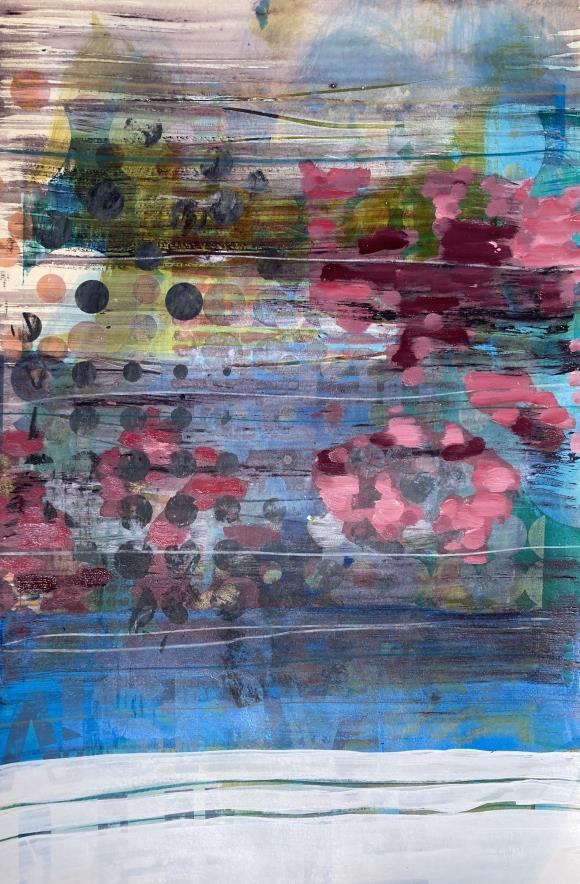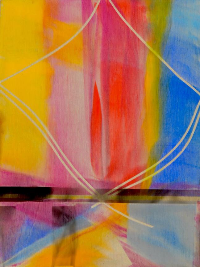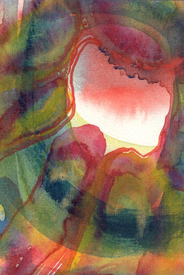 “Working with transparent watercolors as an abstract artist, portal type imagery appears often as I play with layers and light.”
