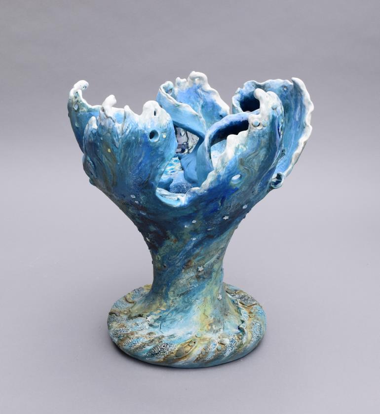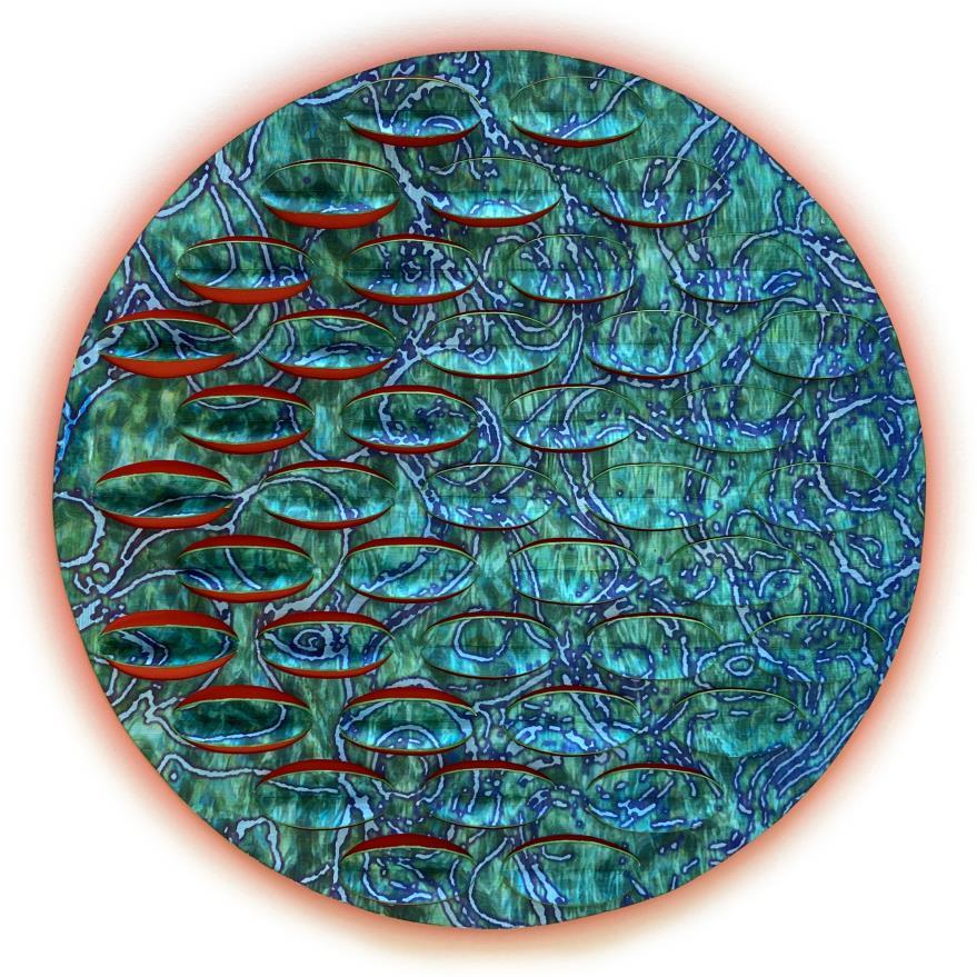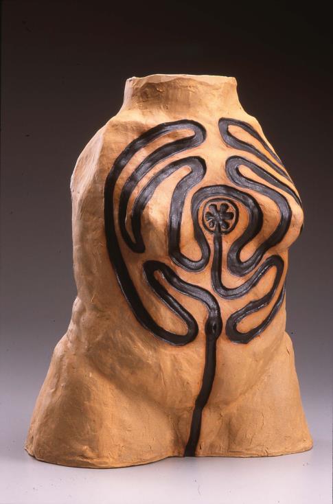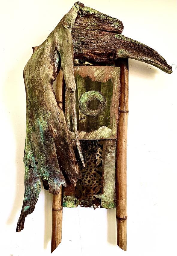 The portal and journey of self-discovery allows one to understand complex emotions such as love, anger, joy, fear, depression, etc. Lorraine Bonner’s work focuses on self-discovery and “painting” the unvarnished truth through her beautiful sculptures and stories. In Labyrinth , I see a portal to the heart chakra. Lorraine says, “The path will be circuitous. It may start from root or crown, may lead you through the light or the darkest night. It leads to the portal of no-judgement: on one side, the depths of your heart, on the other, the infinite universe.” With In-Between Worlds , Janna Waldinger explains “I feel most alive as a visionary teacher a bridge between worlds of the seen and the unseen, between ordinary and the extra-ordinary. Paths are archetypes and useful metaphors for our journey through life.” The vortex on the path draws me in, wondering what I would learn and experience if brave enough to step through to the other side.