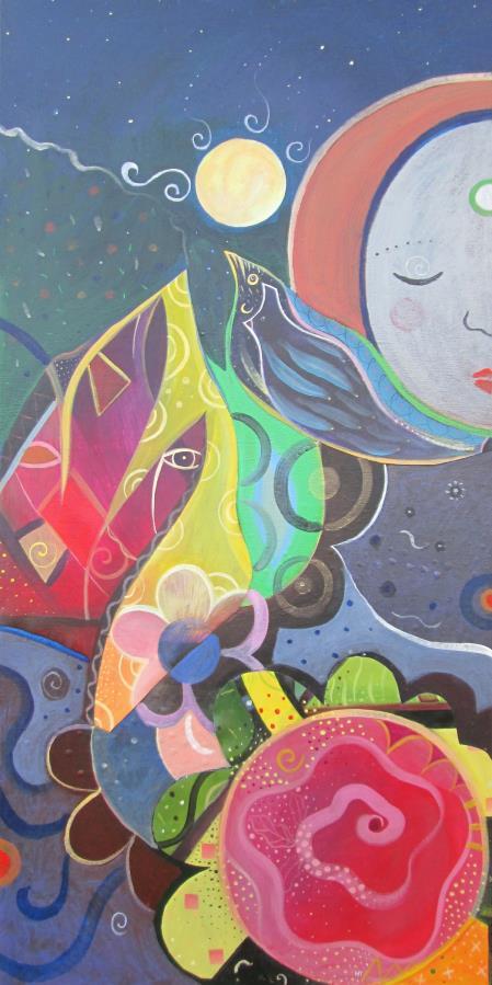 “I've been having lucid dreams about portals and transcendence and was compelled to paint this welcoming and exuberant entrance to another space.”