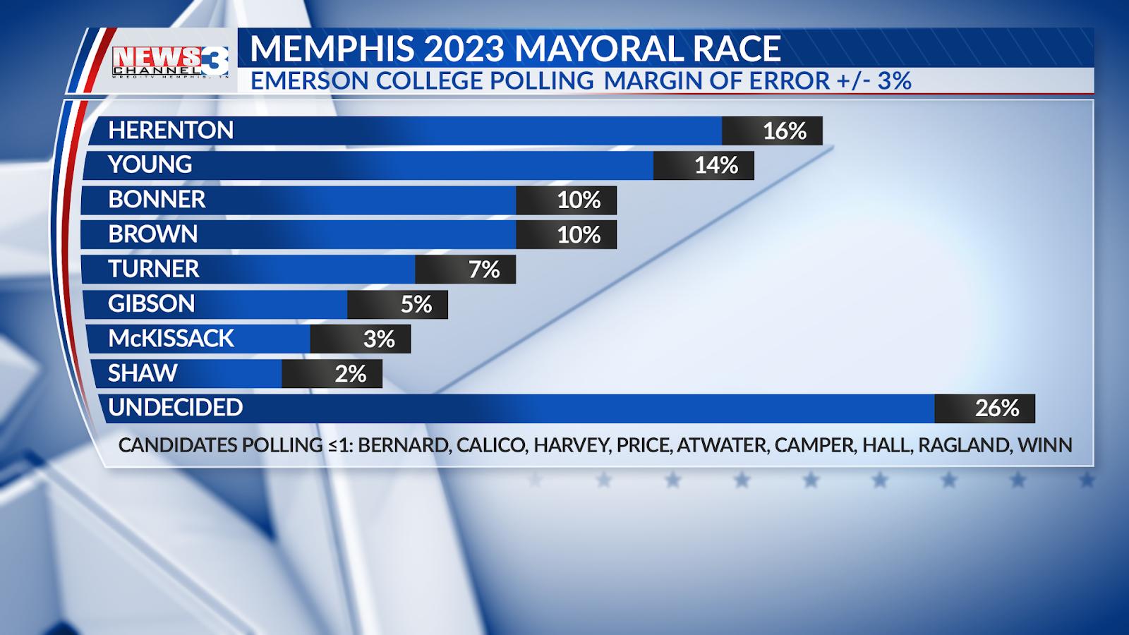 Latest poling data for the Mayoral vote. Source: wreg.com