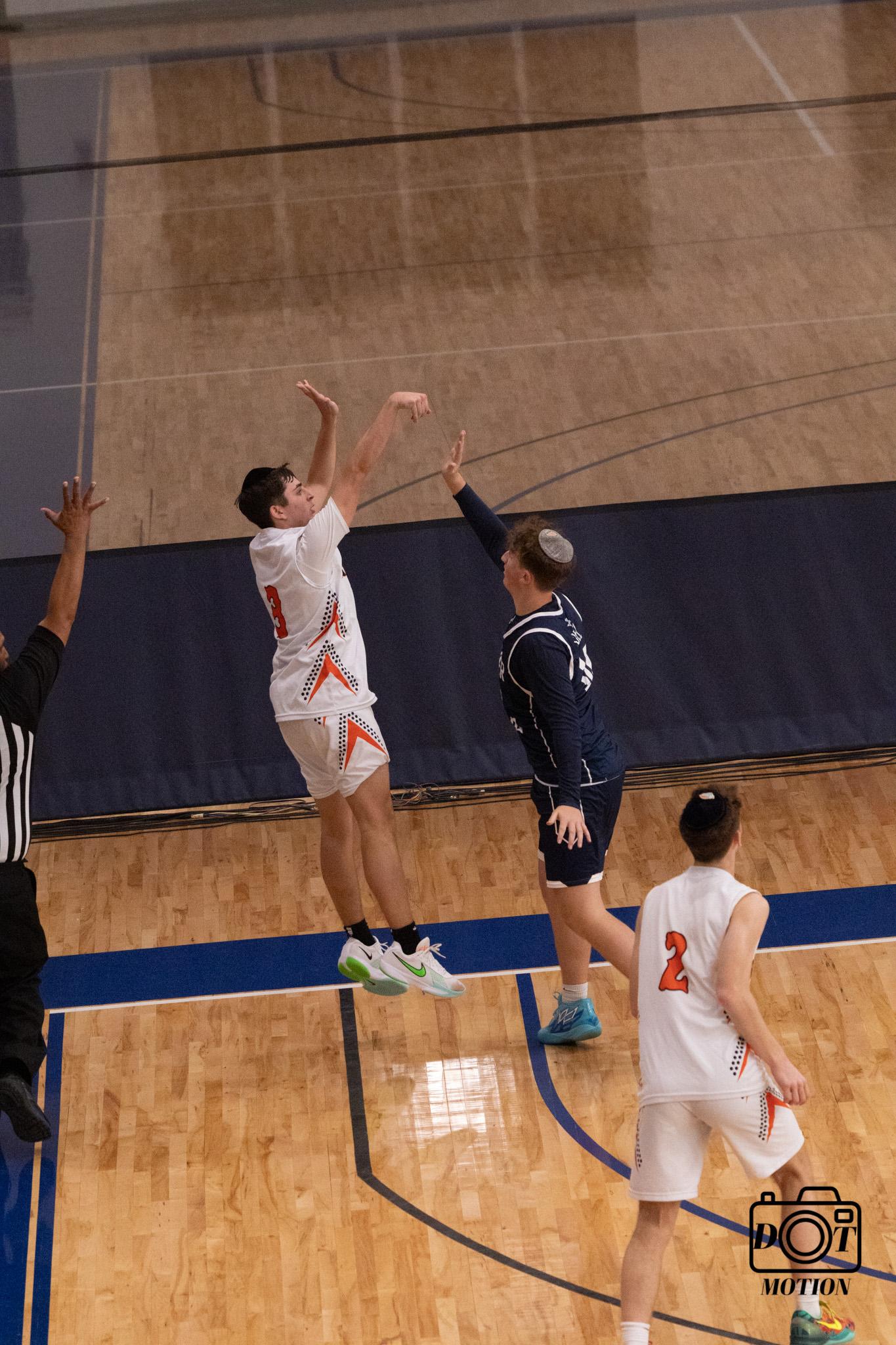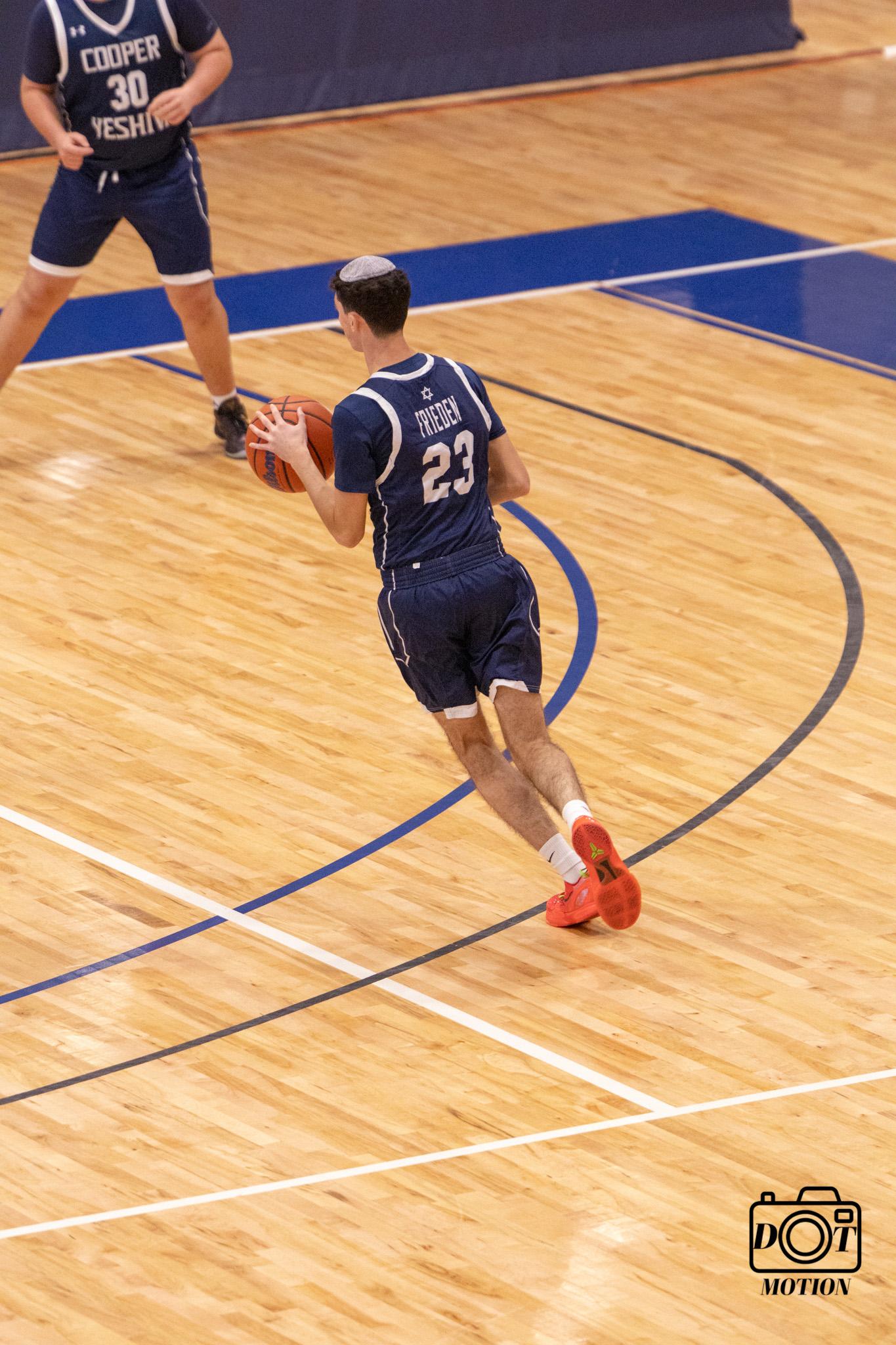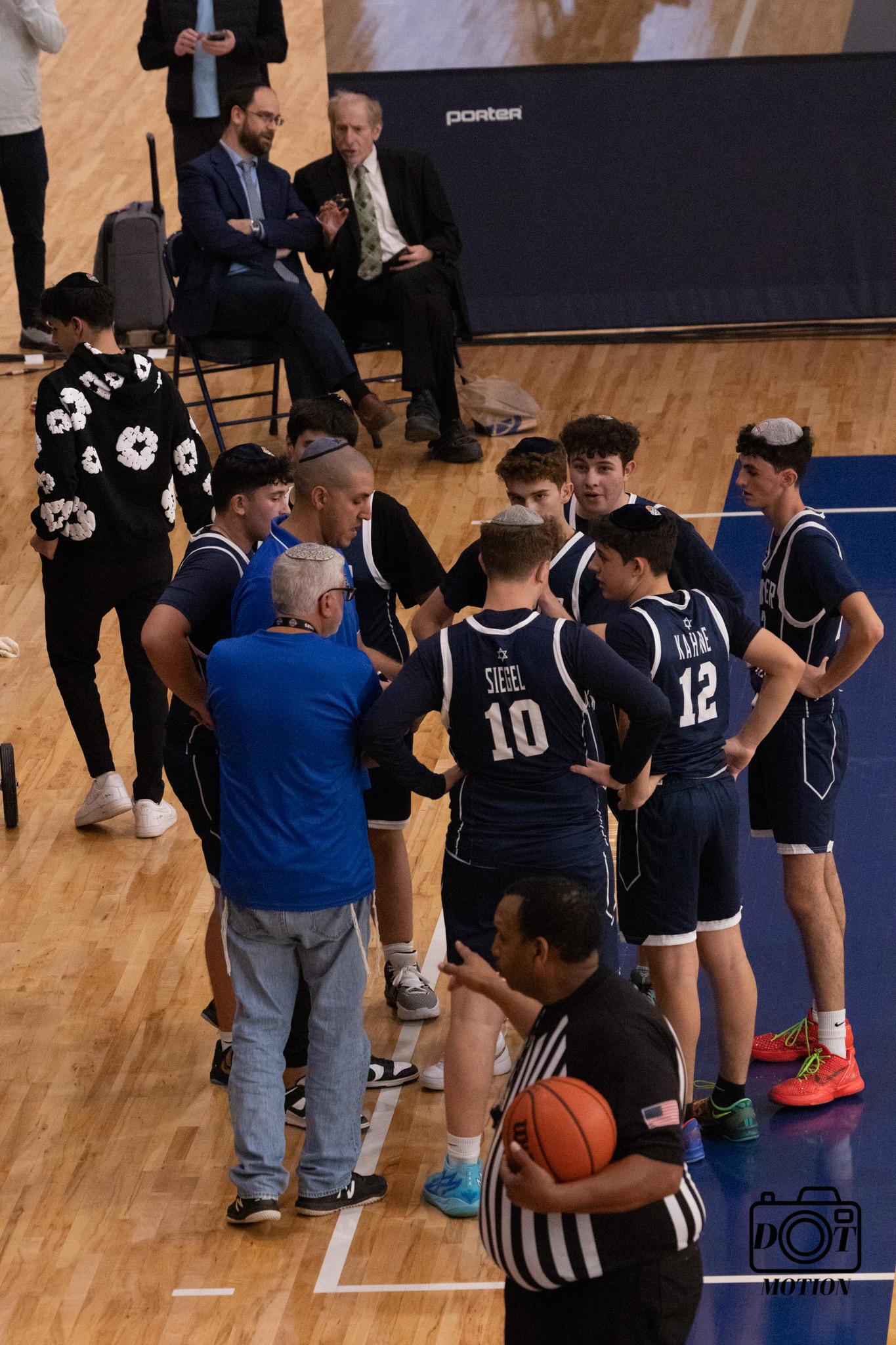 tournament on Thursday morning with game one against Fasman Yeshiva from Skokie, IL. After a pre-game speech from Coach Kobi Pinto and Coach David Winestone, we were ready to leave it all on the floor. The game went back and forth from the opening tip with both teams trading baskets. It was 45-45 with 13 seconds to go, Senior Ben Frieden drove to the lane and sank a floater to take the lead, and