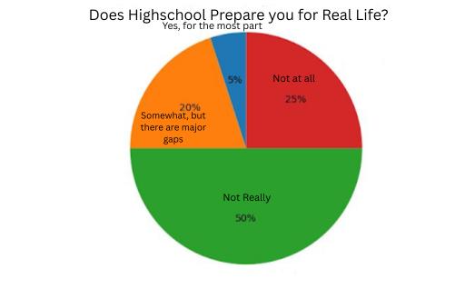 Continued fom previous page feel high school is actually preparing you for real life?” The results were surprising. Although most students feel they’re learning a lot academically, many are unsure whether they’re gaining the practical skills they’ll need once school ends. Out of the votes cast, one student voted “yes, for the most part,” five students responded “Somewhat, but there are major gaps,” another five said “Not at all,” and the largest amount, which was ten students, said “Not really.” That means the overwhelming majority of respondents feel unprepared for basic adult responsibilities. What stands out the most is that students want to feel prepared. They want to understand how taxes work, how to budget, how to avoid falling into debt, and how to navigate the choices that adulthood brings. "I think that schools should have classes t tach us even a little bit about the basics of adulthood," Benny Freiden ('26). It’s not that anyone expects high school to teach every possible adult skill; life itself will always be the real teacher. But many teens today feel like learning the basics