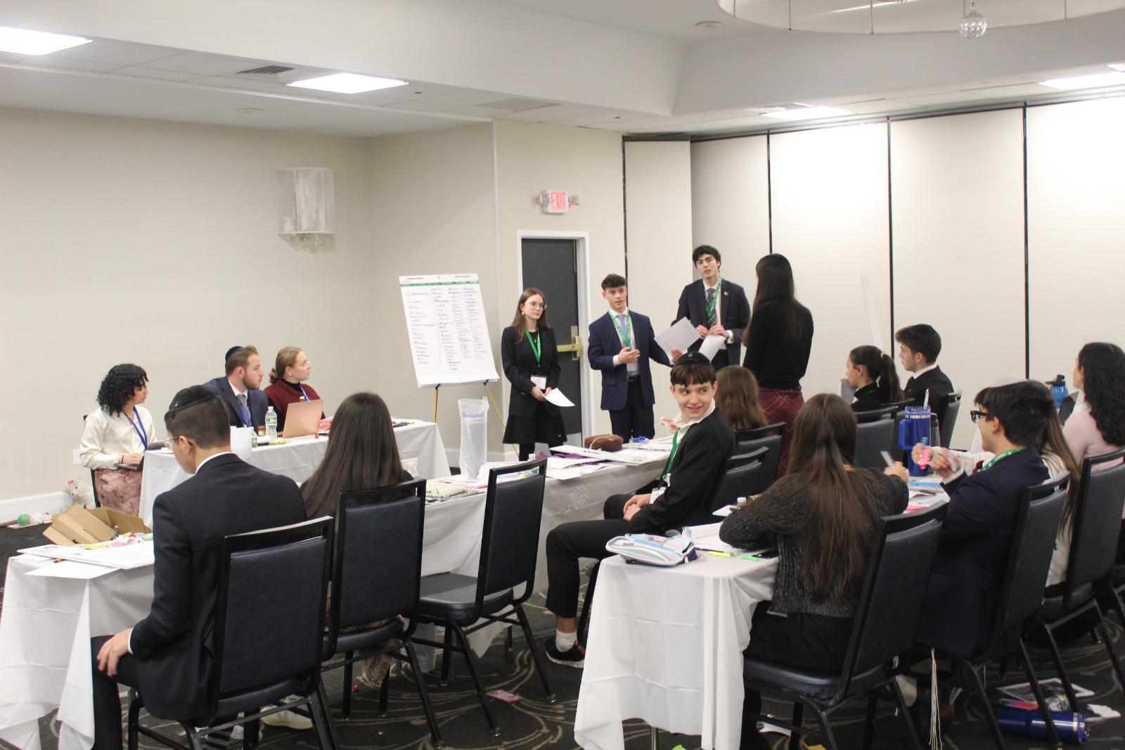 stressful situations, delegates develop skills beyond Model UN. Co-Captain Amit Zalman (‘26) said that, “YUNMUN has helped me on a very personal level. By connecting and networking with other kids from Jewish schools across the nation, I was able to make friends and connections for life. Additionally, it has helped my debate and diplomacy skills in discussing controversial topics and being open minded, helping me learn how to look at the perspectives of others in all aspects of my life.” Similarly, Captain Etta Kurinsky said that YUNMUN has, “helped me to get over my fear of public speaking, grow my leadership skills, and has taught me to work with others in high pressure situations.” These messages, of the benefits of YUNMUN extending beyond the conference itself, have been echoed by nearly all participating delegates. Model