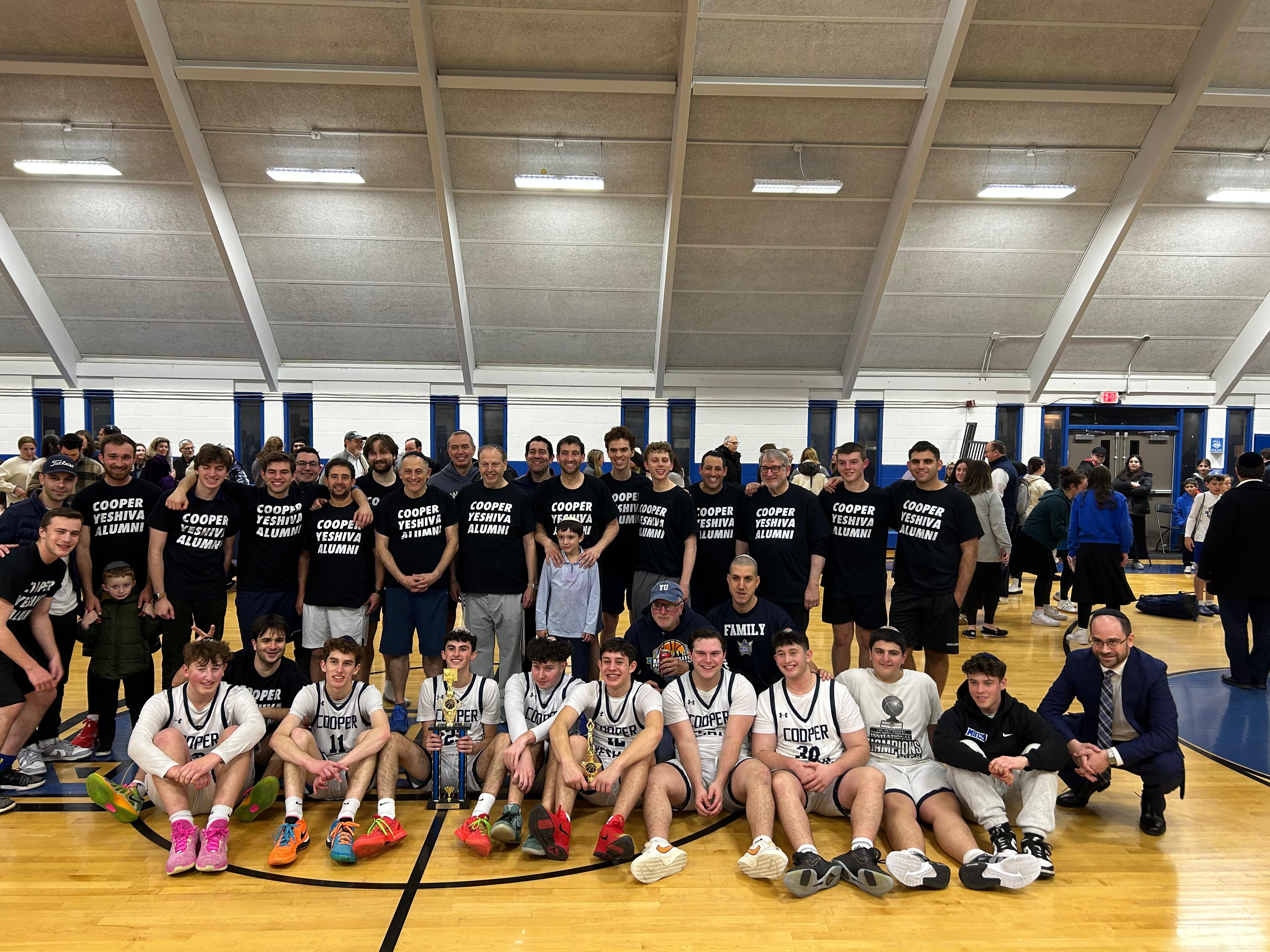 Fans packed the stands as the Cooper Yeshiva High School Macs and the alumni team warmed up for the highly anticipated Irby and Bernice Cooper Alumni Game, an annual matchup between the current Cooper Yeshiva High School team and its alumni. This year’s game was especially meaningful, featuring five family matchups between current players and relatives, including grandfathers, fathers, and brothers, which made the atmosphere even more electric.