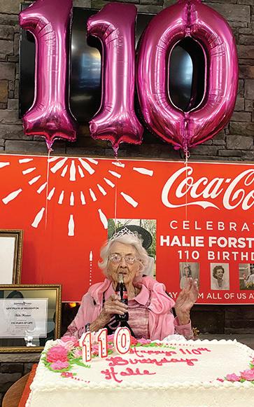 out Valley Presbyterian Church, threw her a “big birthday party,” she said. A celebratory lunch, plenty of bottle Coca-Cola (her favorite drink) and a beautiful cake set the table. After lunch, the day was capped off with a birthday parade through the portico as she watched and waved to pass ers-by. Clowns, antique cars from different decades, and plenty of friends and well-wishers drove through with “Happy Birthday” signs and cards for her. Bagpipers from Alhambra Shriners Highlander Pipes and Drums played beautiful hymns and songs. All in all, it was a birthday celebration fit for a queen—Morning Pointe’s queen, Ms. Halie Forstner.