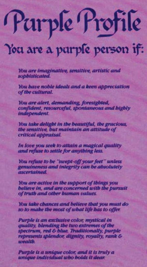 Sonia’s affinity for the color purple and her choice to wear it always, embellish her home in it, and even drive a purple car earned her the title, “The Purple Lady.” But why the purple you might ask? According to Sonia, there is an obvious answer to that question. “You see, purple people are known to be imaginative, creative and ar tistic. We have a love for all things beautiful and magical, and are re lentless in pursuing our ideas. (see photo, right inset)
