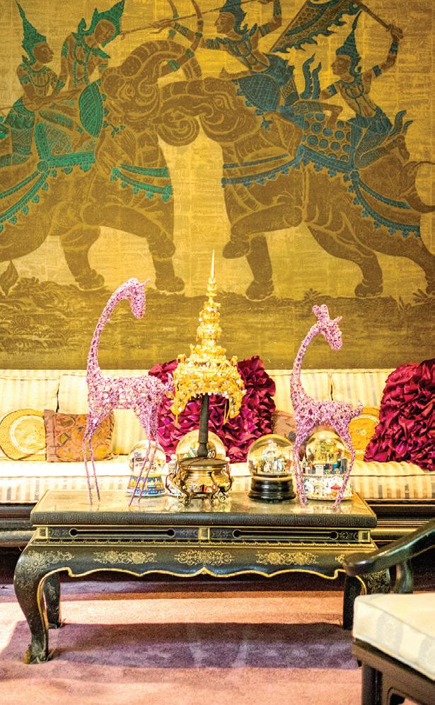 Young’s beautiful purple giraffes to commemorate her bringing the real giraffes to the Chattanooga Zoo. They sit among her many treasures in her delightfully purple, stylish home.