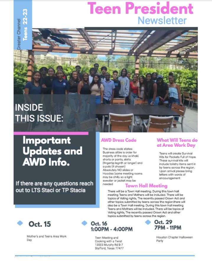 In a day and age where time is a precious commodity, it's important to find the right words to thank mothers who take time from their busy lives to go above and beyond for the “Fabulous” Greater Channel Chapter. We appreciate mothers who do extraordinary things realizing this takes time and energy and, to state the obvious, it's not like they're getting paid. So big Shout Out to Our October Top Model Mother!