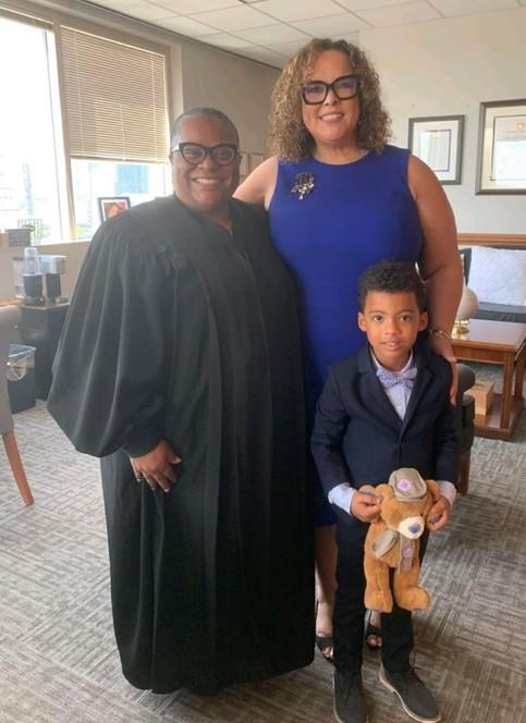 Celebrating the adoption of her son! We are super excited for the Tesemma family! Check out our own Judge Harrington in the mix.