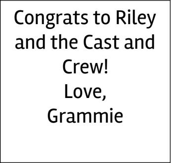The artistic students who helped to paint the sets Rebecca Bufis for her artist genius & assistance Aldo A. Aranzulla for being an amazing director