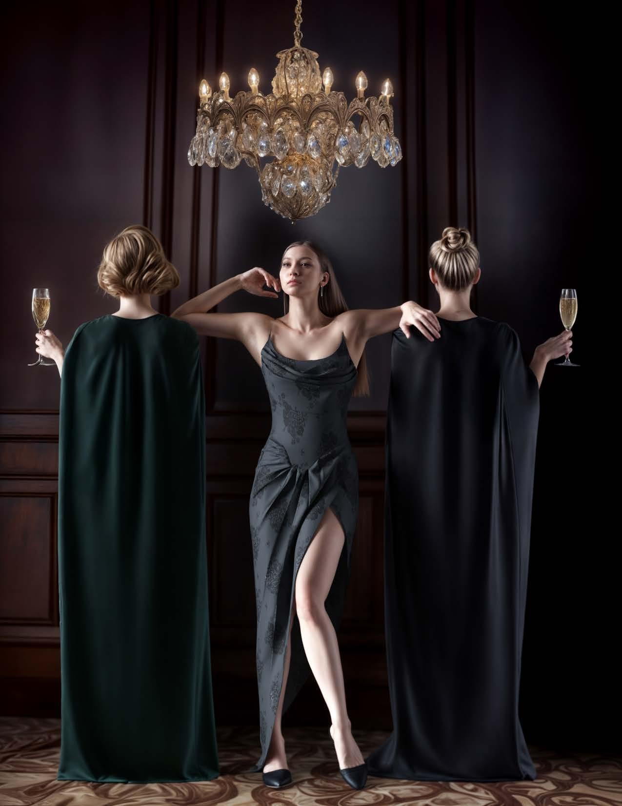 The Gilded Collection by Mrs Momma Bear captures the timeless strength of modern elegance and regal confidence. Each piece combines refined silhouettes and elegant draping with a confident, structured shape. The result is a look that moves beautifully yet holds a strong, tailored fit, from striking two-piece sets to flowing dresses.