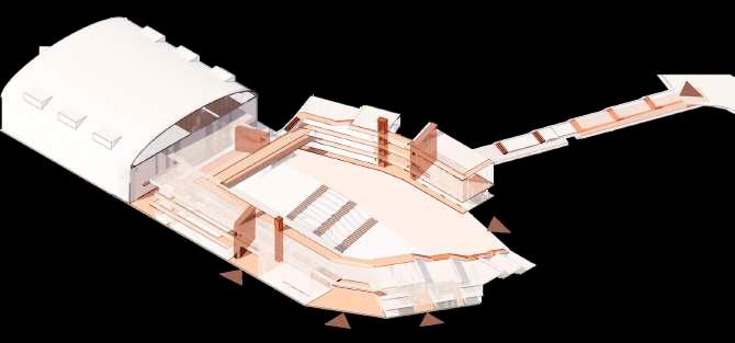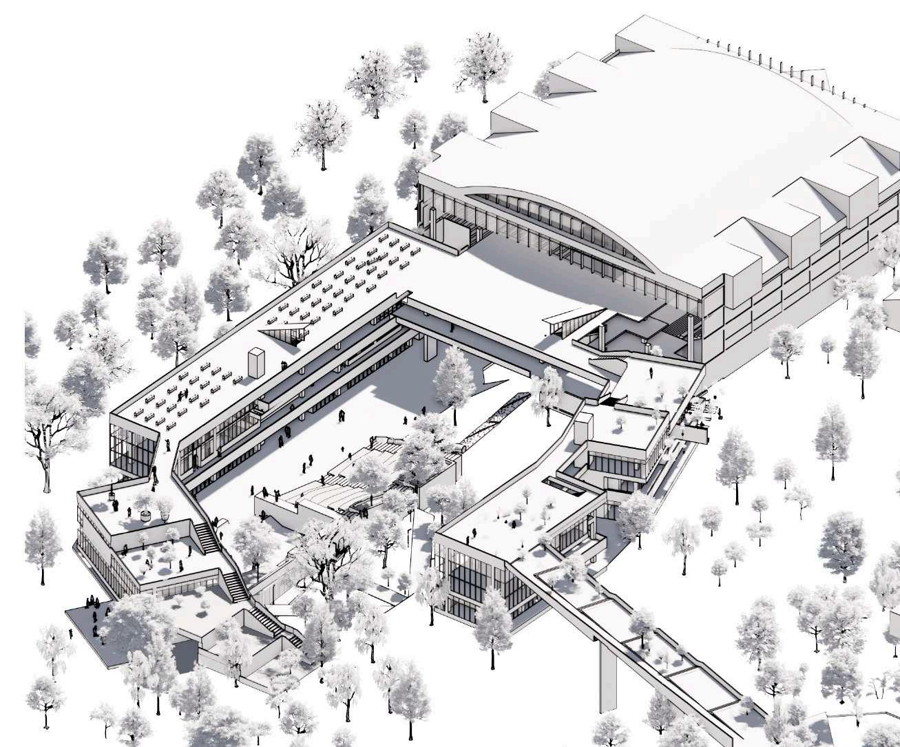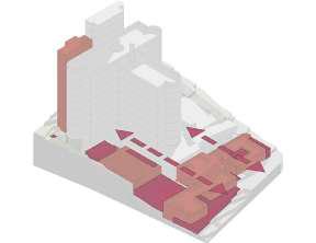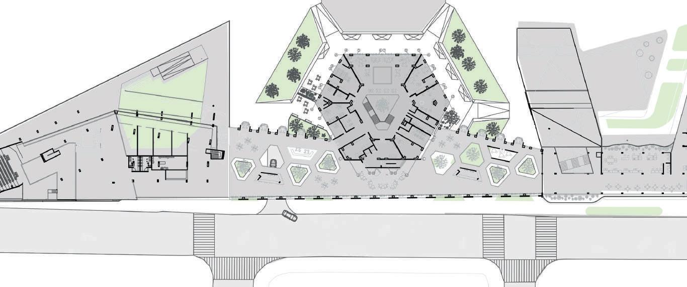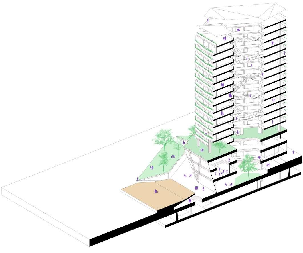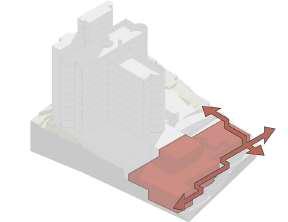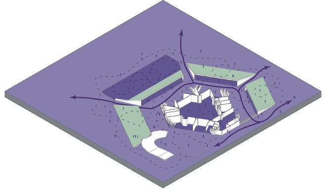 Enterrar el volumen y levan los bordes para aumentar dinamicas urbanas.