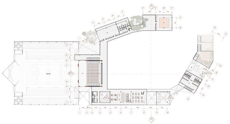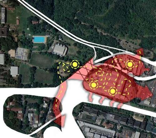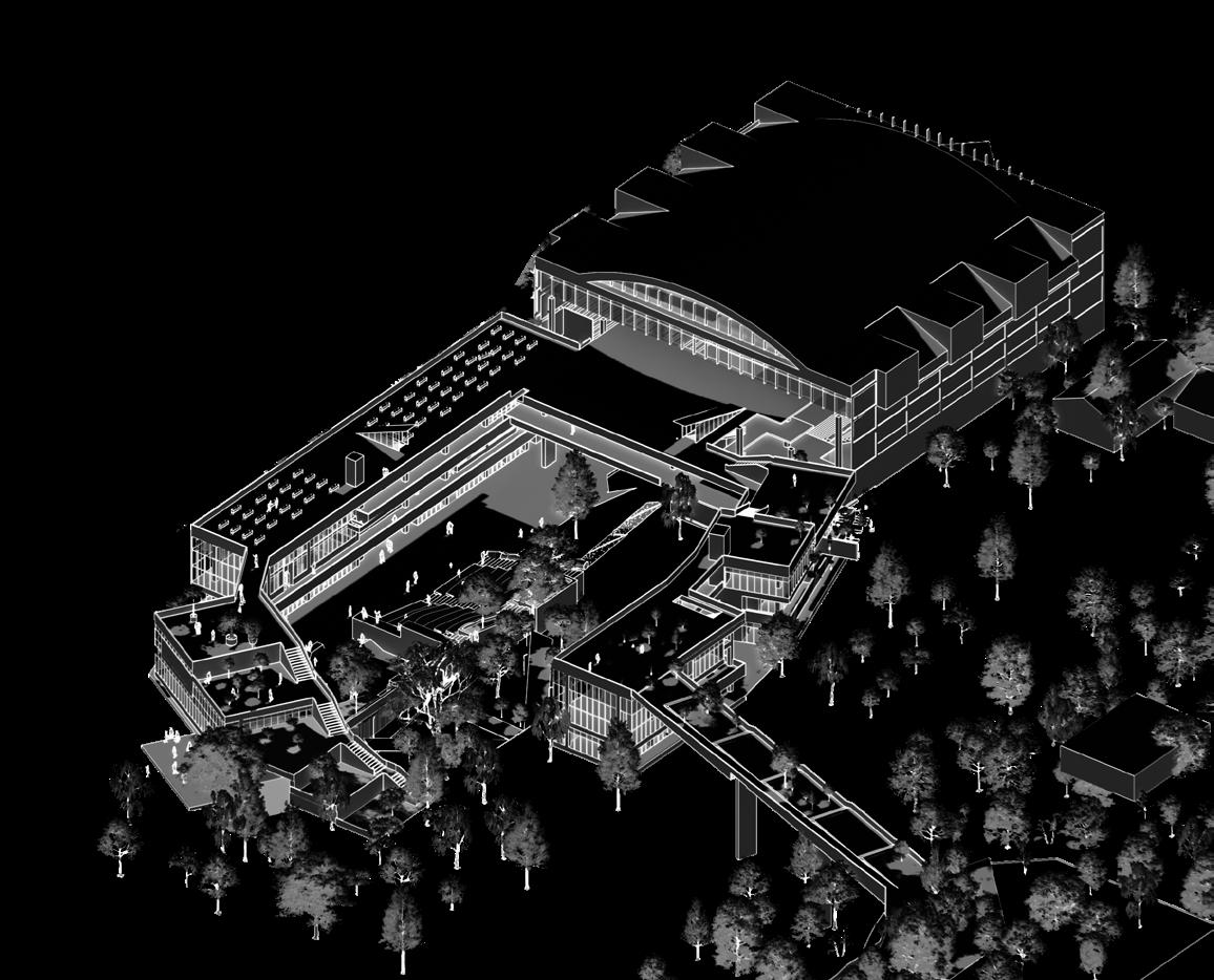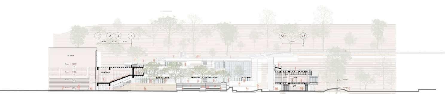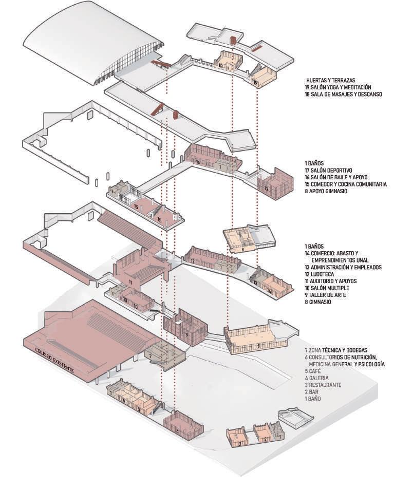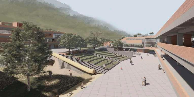 Se plantea conectar el campus El Volador de la Universidad Nacional Sede Medellín con el Cerro el Volador, buscando romper el borde para mejorar la continuidad urbana mediante un espacio público elevando que se aprovecha de terrazas, un puente y la topografía. Además se adosa al coliseo complementándolo y dotando al sitio de actividades que brindan bienestar y de espacion de reunion y espacimiento para la comunidad estudiantil y aledaña, también busca que con la atracción de población se logre mejorar la relación de la universidad con este borde tan abandonado.
