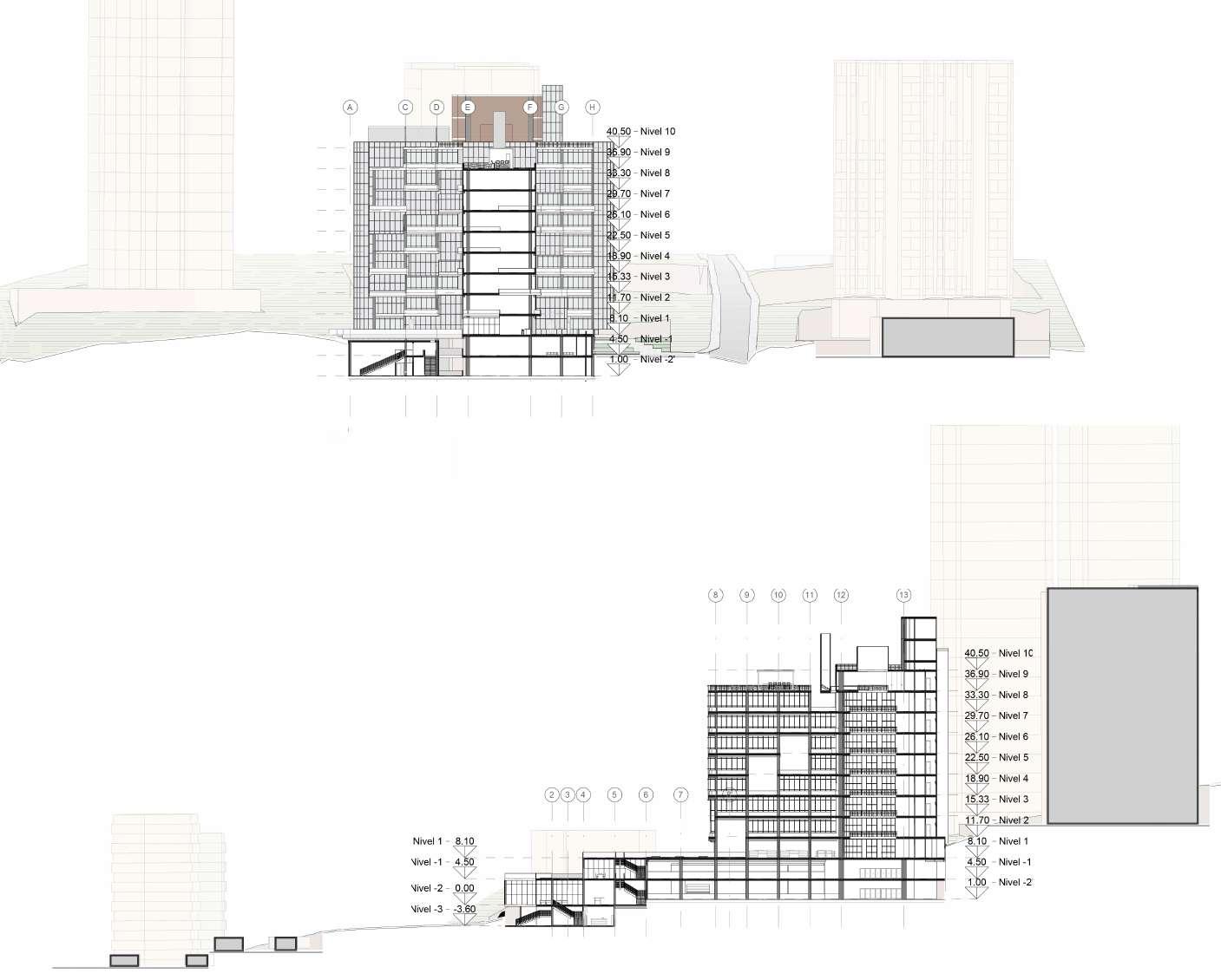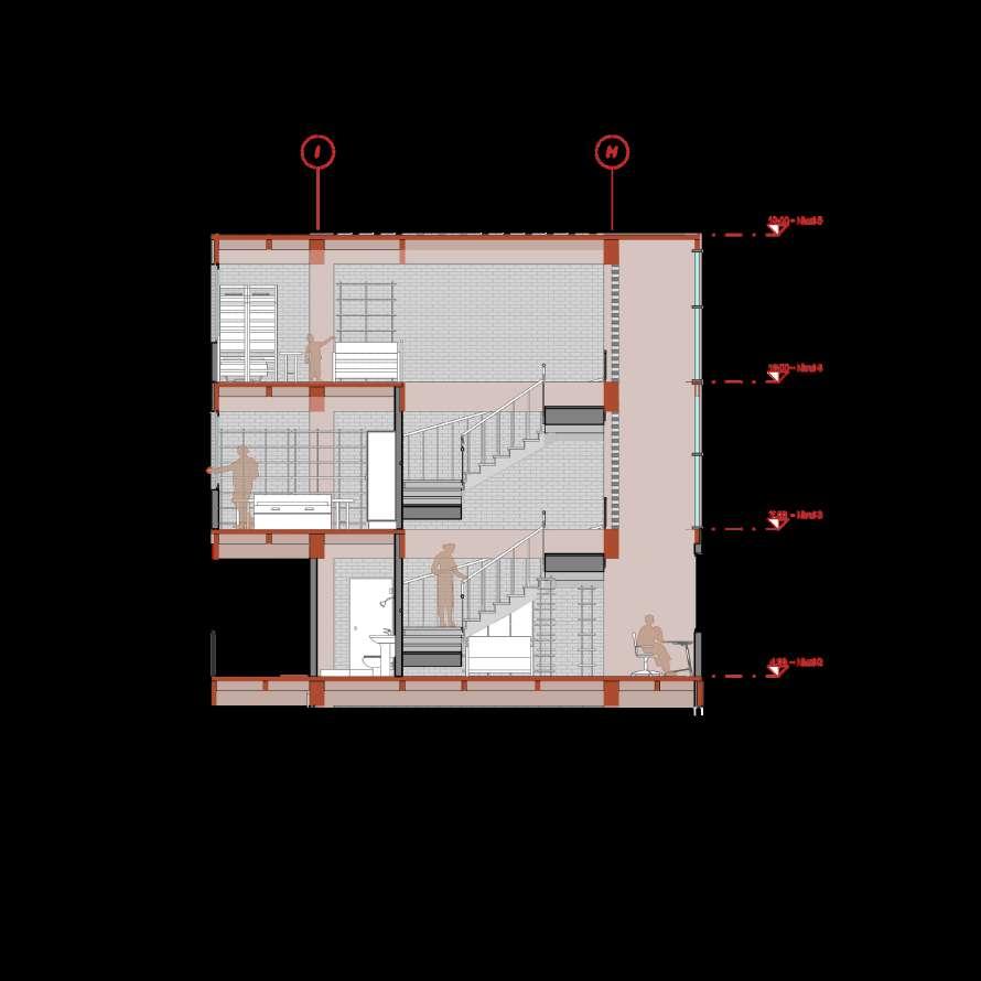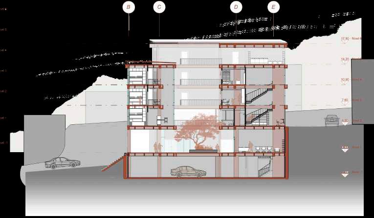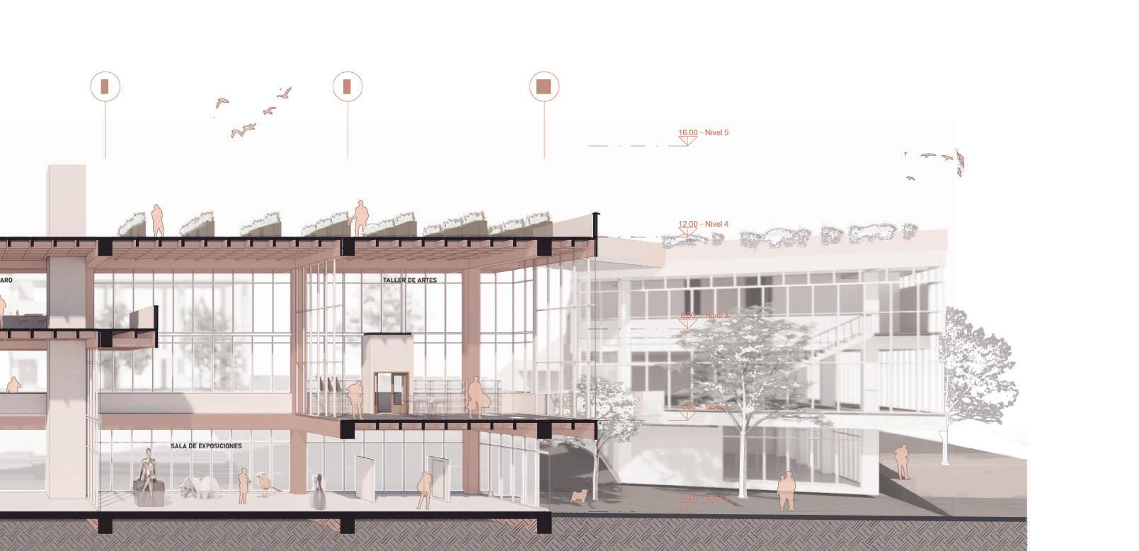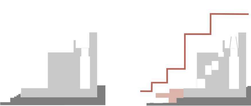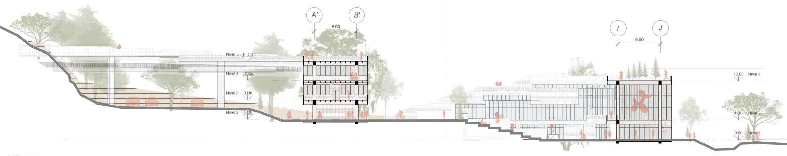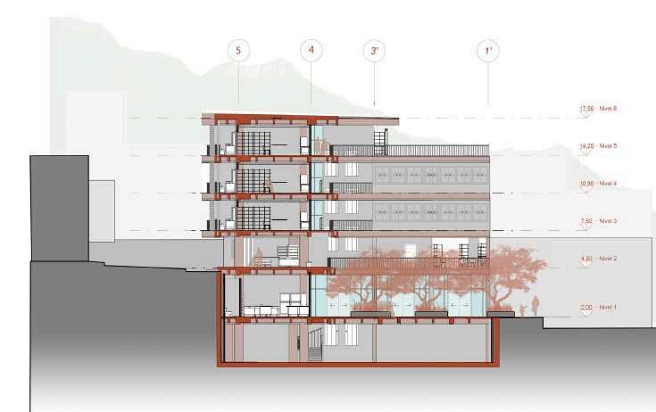 Llevar el escalonamiento a fachada y sección del volumen