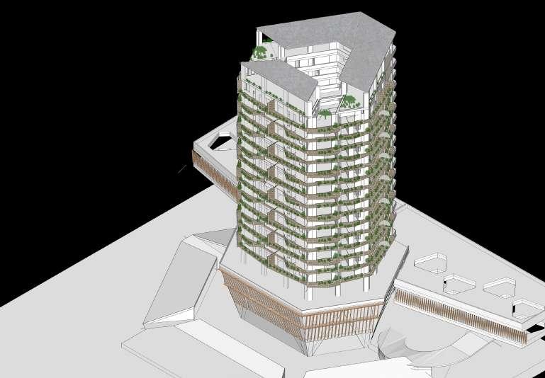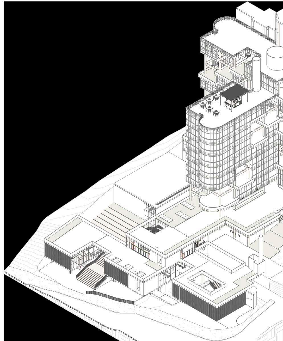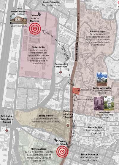 Intervención que busca renovar el Edificio de La Compañía, esto lo hace dándole al edificio un frente sobre la Avenida El Poblado, ya que actualmente se aisla de esta, esto mediante un volumen permeable con un programa cultural - educativo que busca reactivar el borde que a su vez sube por el ala norte de la torre y gtenerando una tensión en la terraza con un rooftop bar con espacios de esparcimiento que permite así que la población general tenga acceso a las privilegiadas visuales. Además sobre el edificio de La Compañía que se conserva se busca mejorar su relación con el clima, implementando un juego de patios y vacios en altura en toda la torre y una chi menea solar aprovechando el vacío con el que cuenta el edificio, asgturando así una ventilación activa en la edificación