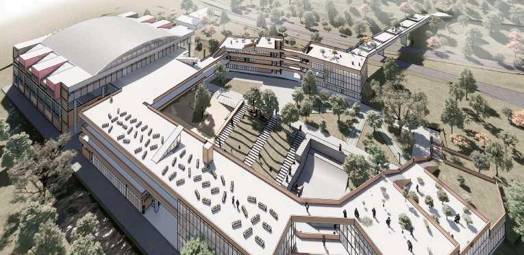 IInternarnos hacia el campus y desplazar cubierta inclinando la fachada.