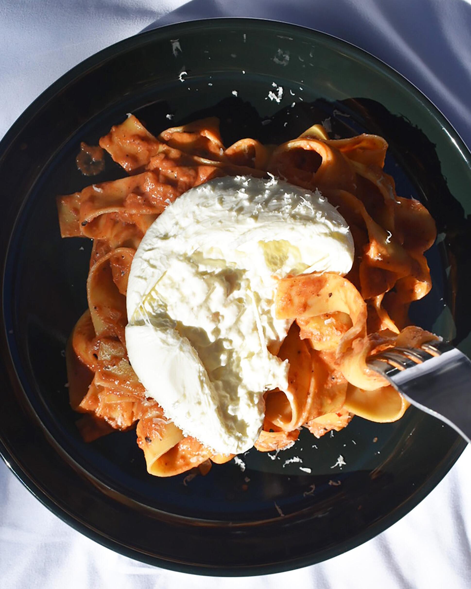 VODKA PASTA IS BEST SERVED WITH: Any veggie of your choice! I like to top with some parm, mozzarella, or a ball of burrata.