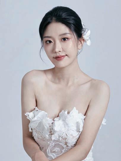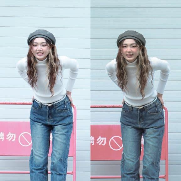 臉寬縮減、下顎線往上提,接著調整嘴角 使笑容更加自然,肩膀及後背推挺。 最後調色,以除去混濁感讓畫面乾淨及背 景加重襯托主角為方向。