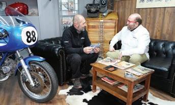 a la vez permite a ClassicCo dedicar largas horas a lo que ellos consideran “lo más bonito del oficio”: la restauración, transformación y cuidado integral de motos clásicas, sean Guzzis o no. Si quieres saber lo que es un flechazo, solo tienes que echar un vistazo a los ejemplares que esperan turno para el taller: BMW, Ducatis, una Moto Morini de cuando eran Moto Morini, e incluso una Yamaha TZR “infiltrada” entre tanto venerable hierro. Mauro Abbadini y su equipo se jactan de saber “lo que le pasa” a cualquier motor bicilíndrico en V solo con escuchar su ralentí: no son magos, es la experiencia de décadas. Tienen clientes que vienen desde Galicia hasta Andalucía pasando por Portugal e incluso un par de motos francesas, el año pasado.