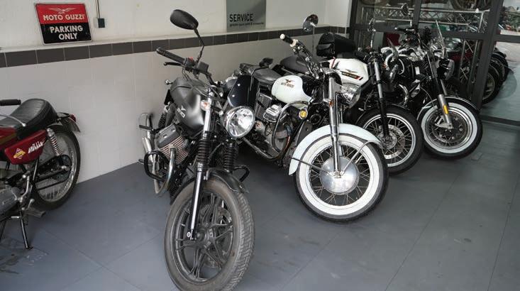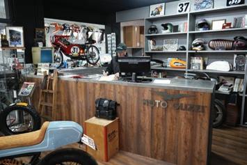 arraigaron quince años en una nave de 500 metros cuadrados hasta su mudanza en 2018 a un coqueto chaflán cerca de la plaza de toros de las Ventas. No te fíes de su angosta entrada, dentro hay un local de quinientos metros cuadrados -más otros 125 de almacén-, donde trabajan cuatro personas (Ángel en recepción, Rafa y Félix en el taller, y el propio Abbadini). La venta de motos no es el leitmotiv de ClassicCo, aunque traen a demanda cualquier modelo que les pidan. Mauro Abbadini siempre ha apostado por Moto Guzzi, que en los últimos años han diversificado su gama, tocando la fibra de los clientes y por lo tanto dando un subidón en ventas para lo que es la filosofía de los italianos.