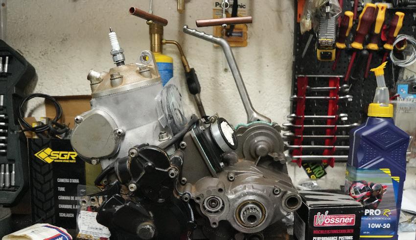 Motor en plena reparación en Moto-Kass Ávila, donde se abordan desde mantenimientos básicos hasta intervenciones completas.