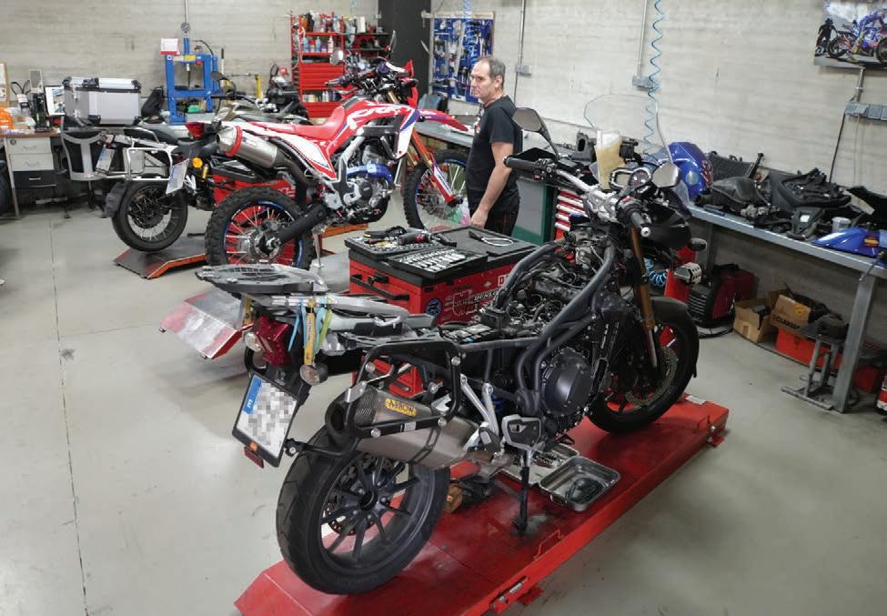 ches, pero siempre estaba en las motos. Al final monté el taller y lo enfoqué con esa mentalidad de paddock, donde todo tiene que estar en su sitio”, explica. Esa herencia se nota en la forma de trabajar. “Aquí todo tiene método. En una moto, un milímetro fuera en una abrazadera y todo se desajusta. Por eso hay que ser metódico, limpio y ordenado”, resume. Su experiencia en carreras le enseñó que la mecánica no es improvisación, sino precisión y proceso. Y ese espíritu se percibe en cada rincón del taller. El propio cliente lo nota. En RMS Motos no