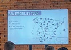 carretera) y de la presencia de la compañía de más de medio siglo en España, con 60.000 de entre los 350.000 vehículos industriales que circulan por nuestras carreteras. Sus resultados han mejorado en un 2% MAN dispone de 71 emplazamientos de mantenimiento y reparación y se han realizado 38 encuentros con 1300 clientes transportistas de mercancías que representan un parque circulante de 25.000 camiones para conocer las necesidades y retos de los empresarios de transporte porque, como dijo Creisquer, “el paso a la electromovilidad es un ‘traje a la medida’. Hay que estudiar cada caso, cada cliente, cada ruta, su orografía, las toneladas transportadas….Este es nuestro concepto “MAN con triple A”: Analizamos la situación del cliente, le Asesoramos, apto o no para pasar a electromovilidad y Acompañamos en su transición.”