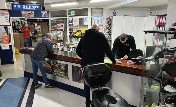 cuenta por ciento los que han cerrado durante la última década. Ni siquiera los grandes concesionarios han aguantado la debacle, y los que siguen es porque están capitalizados por otras fuentes más allá de las dos ruedas. Asturfuente llegó a tener otra tienda en Gijón, pero los nuevos tiempos obligaron a redimensionar un negocio que, como indicábamos más arriba, llegó a emplear dos docenas largas de personas. Jorge añade que “no se puede aspirar a hacerse rico con las motos, en todo caso mantenerse, yo llevo 30 años sin hacer vacaciones”. Preguntado por la estacionalidad, Jorge dice que la temporada de moto se estira más porque las temperaturas en invierno son cada vez menos gélidas: “Eso también es aplicable a la maquinaria agrícola, ahora el césped crece incluso en invierno y hay demanda lineal todo el año”. De todas maneras, Astufuente no levanta el pie del gas ni un mes del año, ya que también llevan el mantenimiento de diversas flotas de reparto. Además, en Asturias hay un problema con las ITV: “la empresa concesionaria tiene unos