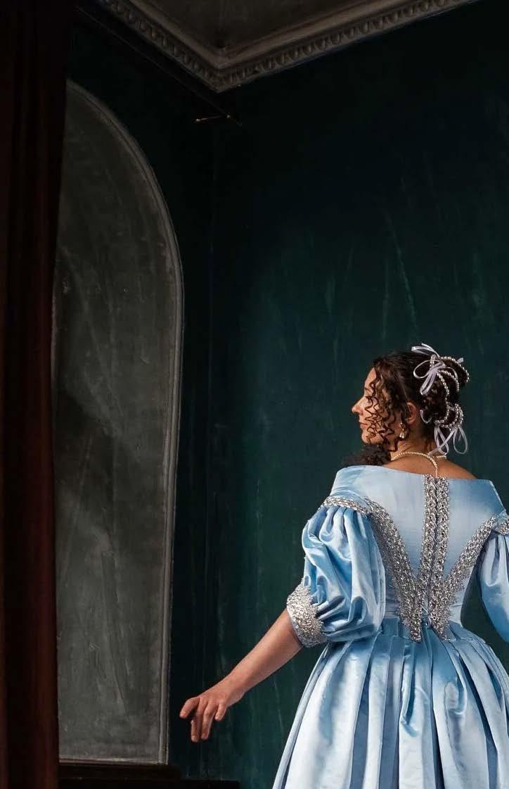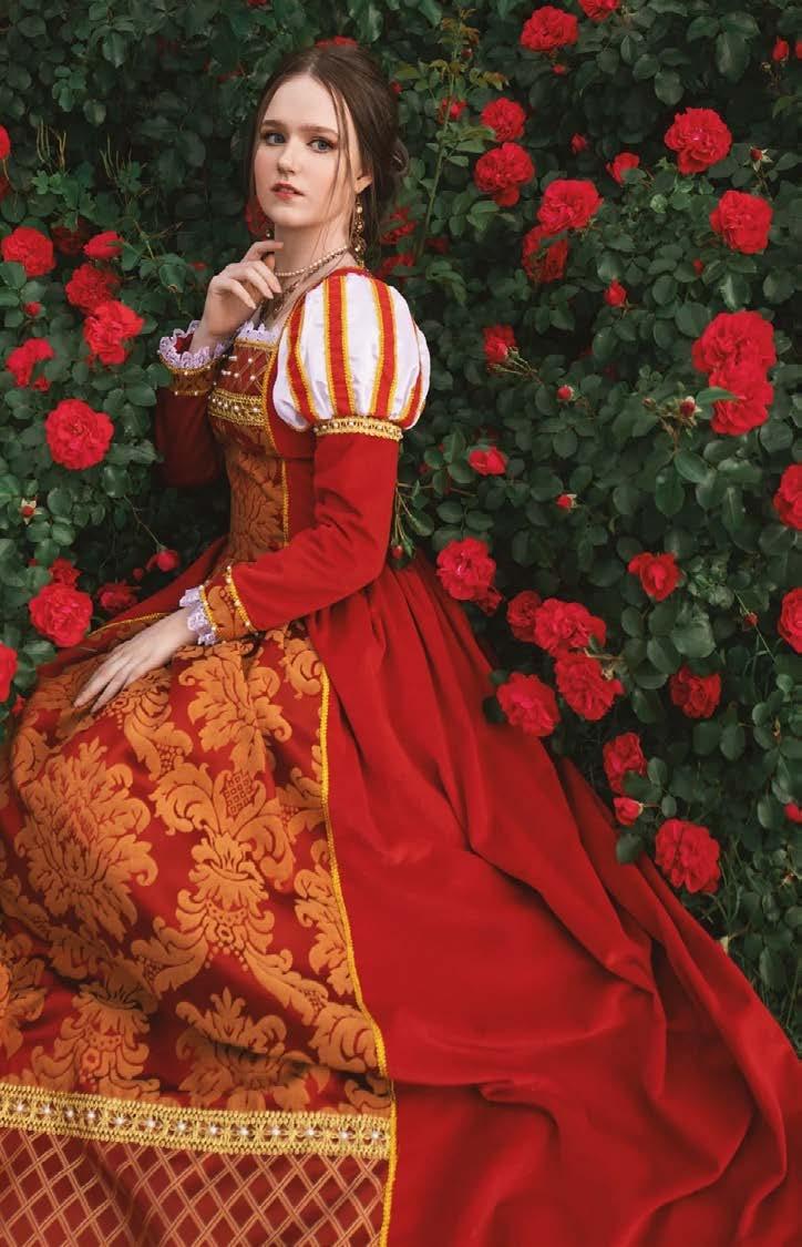 In 15th- and 16th-century Italy, women wore gowns richly decorated with stunning detail. e fabrics were luxurious, such as velvet and silk, and embroidered with gold and silver threads. Sleeves were large and pu y, and collars were high or intricately embroidered, making each woman look like a walking work of art. e gown was more than just clothing; it was a symbol of power, social status, and classical beauty