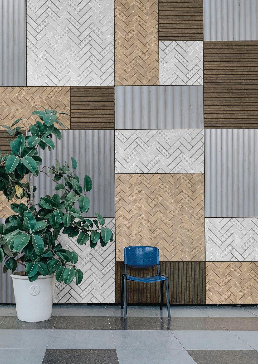 14 Wave weist ein feines und dezentes Wellenmuster auf, bei dem die sanften Rundungen mit den Details der Oberflächentextur kontrastieren. Wave schafft ein raffiniertes und zeitloses Ambiente in Räumen, die ein besonderes Augenmerk auf das Zusammenspiel aller Details lenken wollen. Design von Estudi{H}ac.